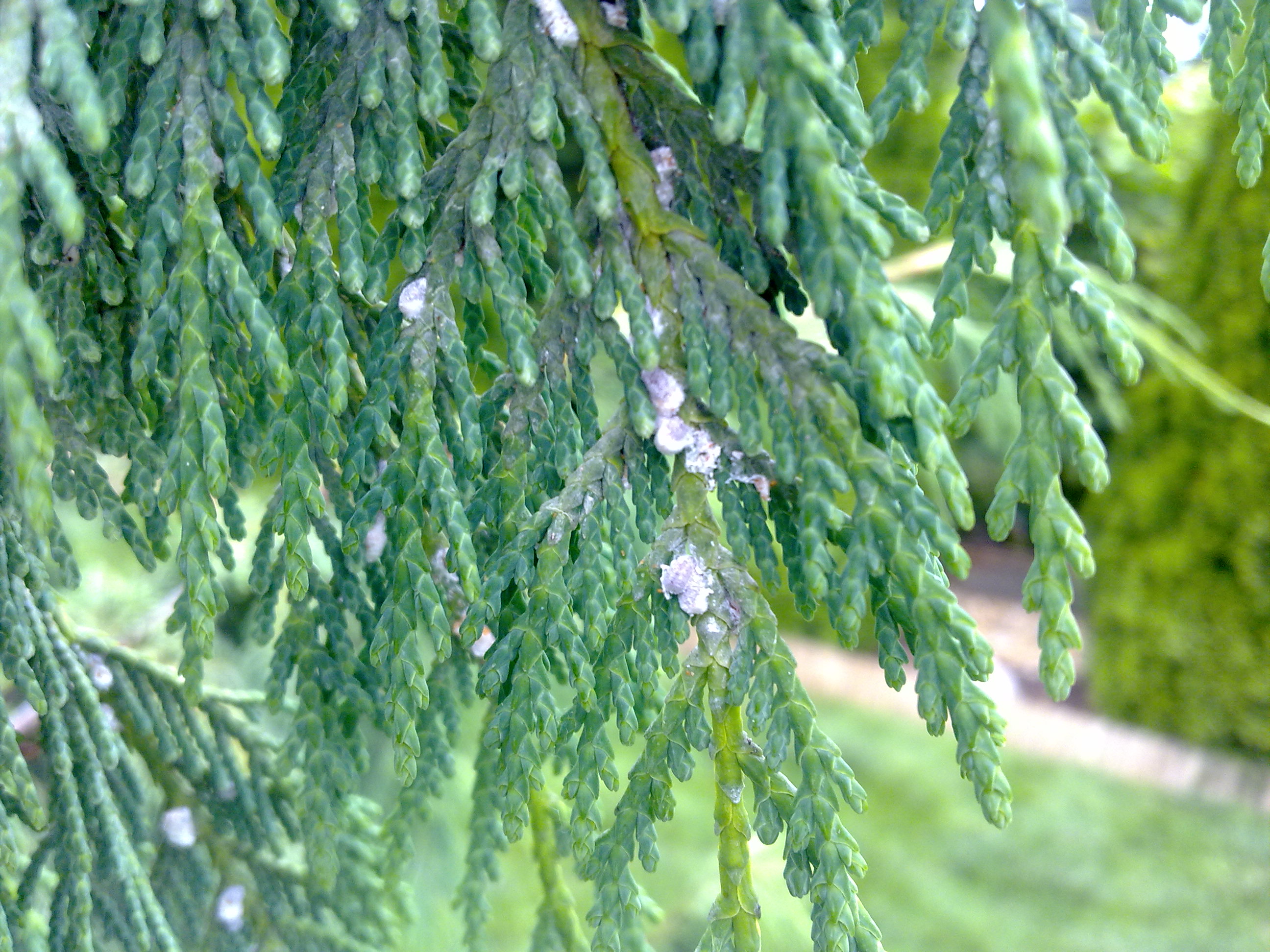 Ha megdörzsölve szétporladnak, akkor azok elhalt egyedek. Ezeket természetesen az eső is lemoshatja, ha kellő mennyiségű víz éri a hajtásokat, de slaggal is tisztítható a növény.