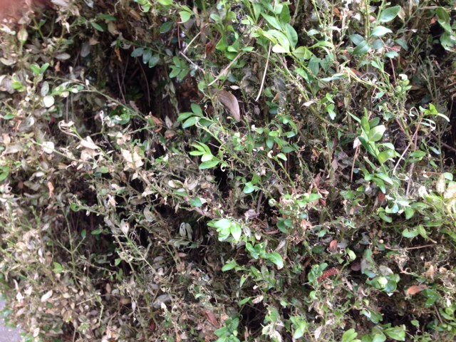 4 gömbalakú buxus már 70 éve díszíti a kertünket, még nagymamámtól örököltem őket. Idáig soha nem volt semmilyen kár bennük. Most - remélem jól azonosítottam - az alábbi cikkben szereplő puszpángmoly támadta meg őket. A négy bokor különböző mértékben károsodott eddig. Sajnos csak egy képet tudtam mellékelni, ez a legrosszabb állapotban lévőről készült.