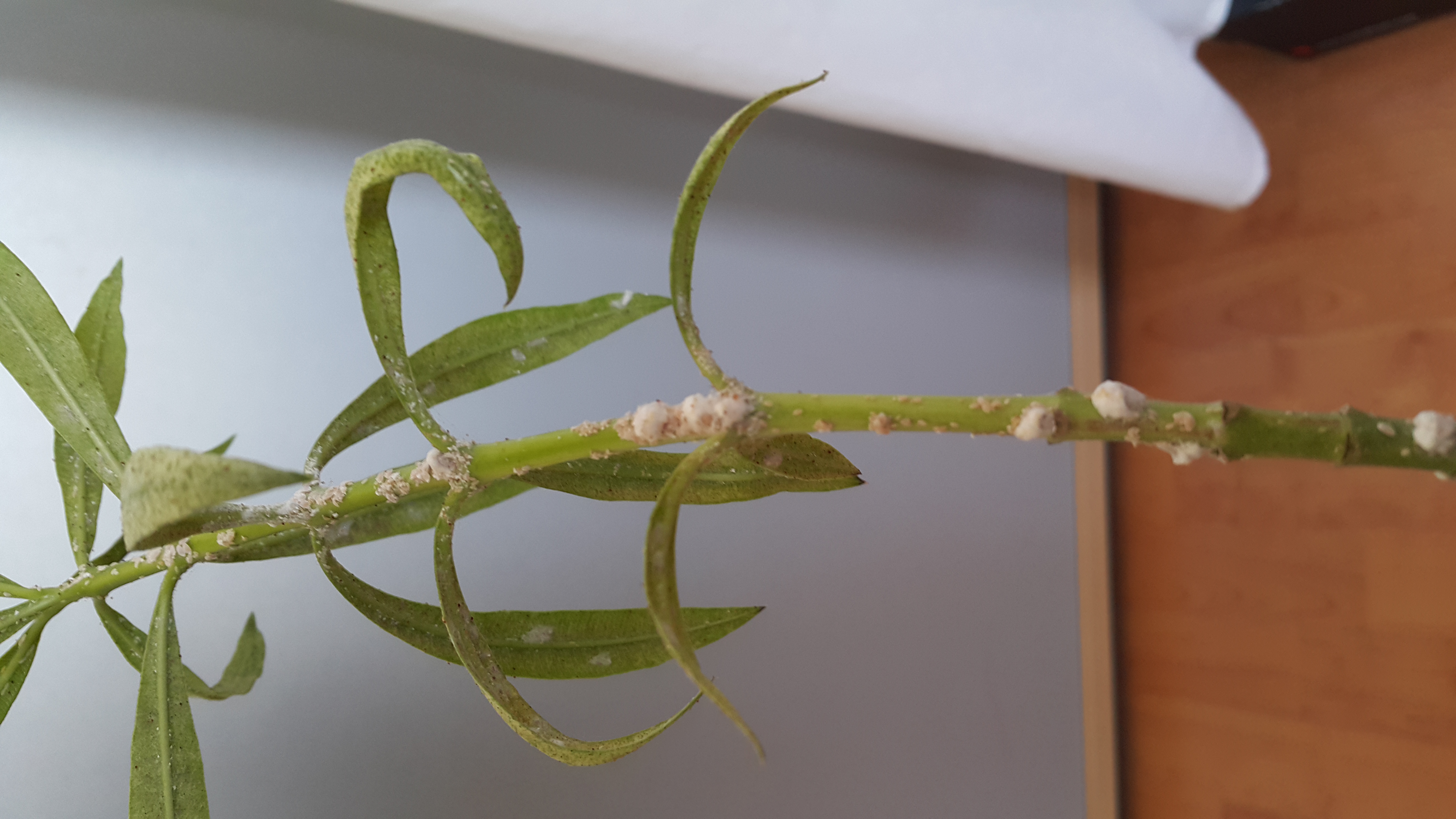 Tisztelt Gazdabolt! Szobában teleltetett leanderünkön fehér gyapjas gubók, és apró állatkák tűntek fel. Mellékelem a fotót. Úgy tűnik,átterjedtek a mellette álló gyanútlan Azáleára is. vajon van ellenük megoldás? a teraszra nem merem őket kivinni, nehogy át ugráljanak a többi növényünkre. Segítségüket előre is köszönöm! K.zs.