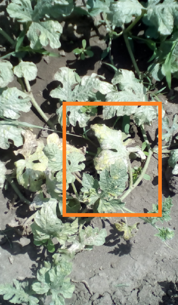 Dinnyelisztharmattal állunk szemben. A védekezés módja 10 lombleveles kortól Amistar-ral, vagy Thiovit Jet-tel történő permetezés. Tisztelettel és üdvözlettel: Kis Krisztiánné Mariann