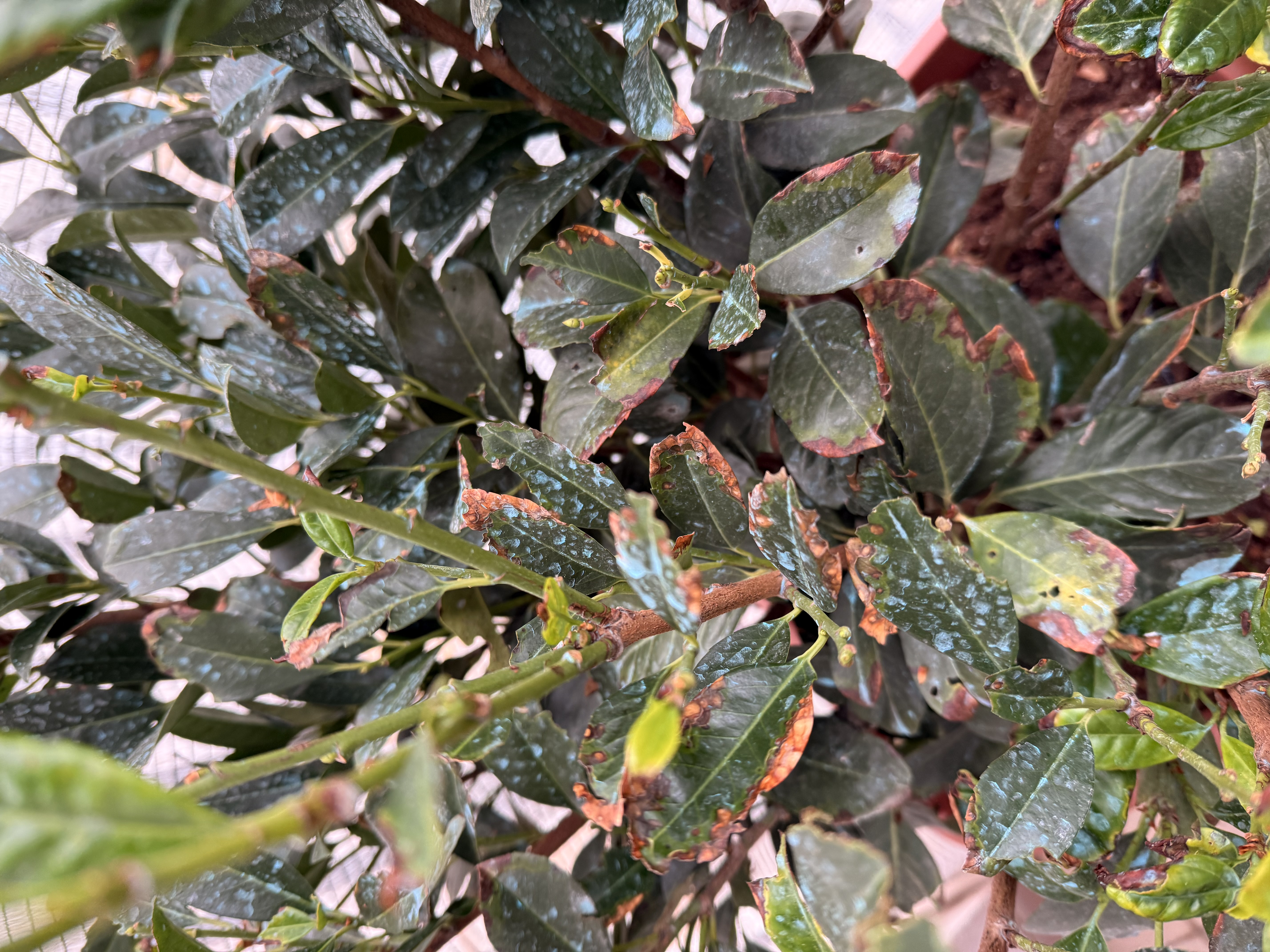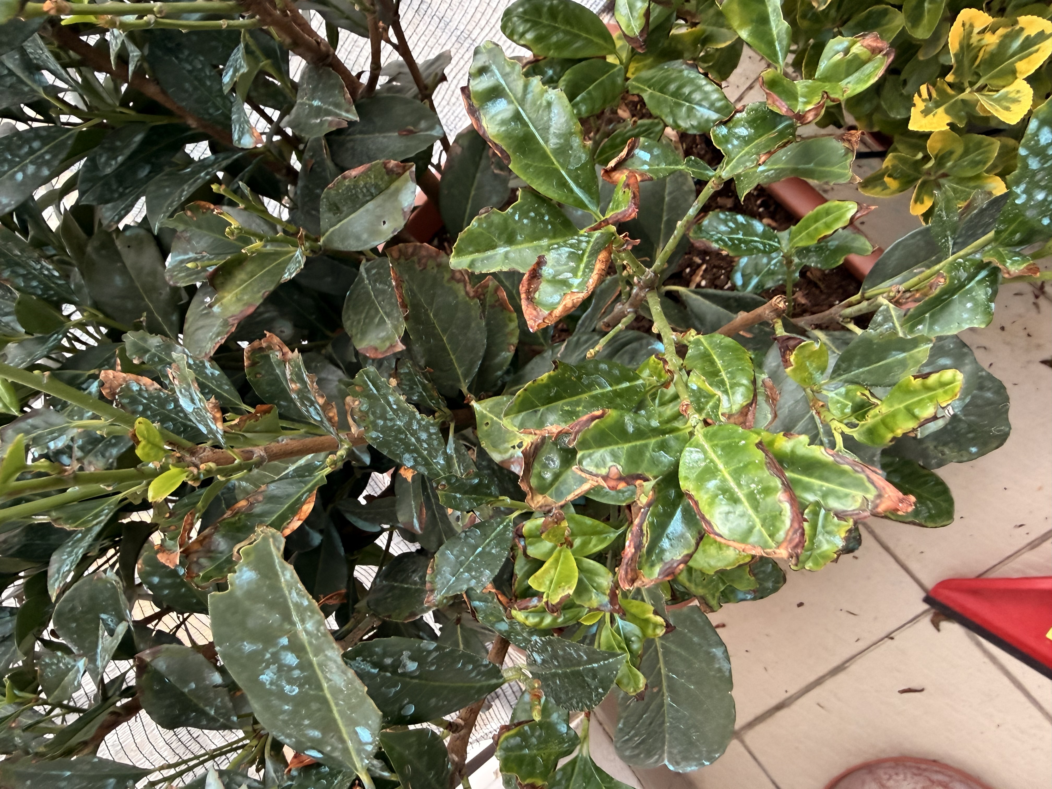 E ket utobbit a javaslata szerint havonta kapni fogja. Nedvessegmero, somero van. Sok beteg levelet levagtunk, utana jott egy csomo uj hajtas, aminek a fele kb ugyanolyan porkolodott, barnas szelu volt, de igeretesnek tunt a reakcio. Csatolok par kepet a mostani allapotrol. Amit latunk, az meg az utahatas, es hosszu ido, mig meggyogyul? Vagjuk e le teljesen a beteg leveleket? Most a tel elott nem vartam nagy javulast, de gondoltam rakerdezek, tudunk e meg tenni valamit? Koszonom szepen!