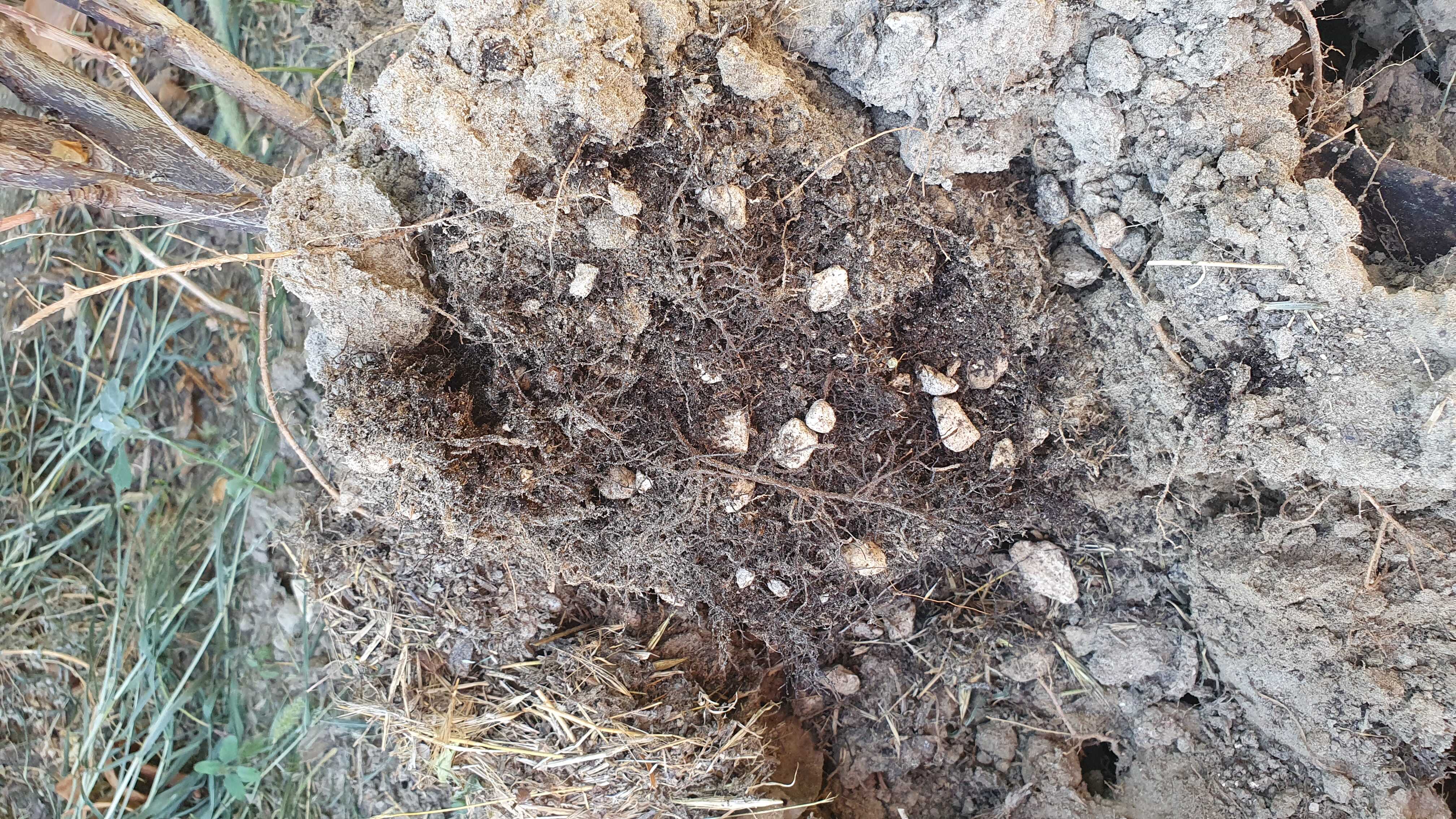 A kiszedett növény gyökereit célszerű lenne lemosatni és azután megvizsgálni. Ezek után küldjön képeket! A talajon is látok lyukakat. A talajban lehet talajlakó kártevő, de élhetnek ott hangyák is tömegesen. Tapasztalt ilyet?