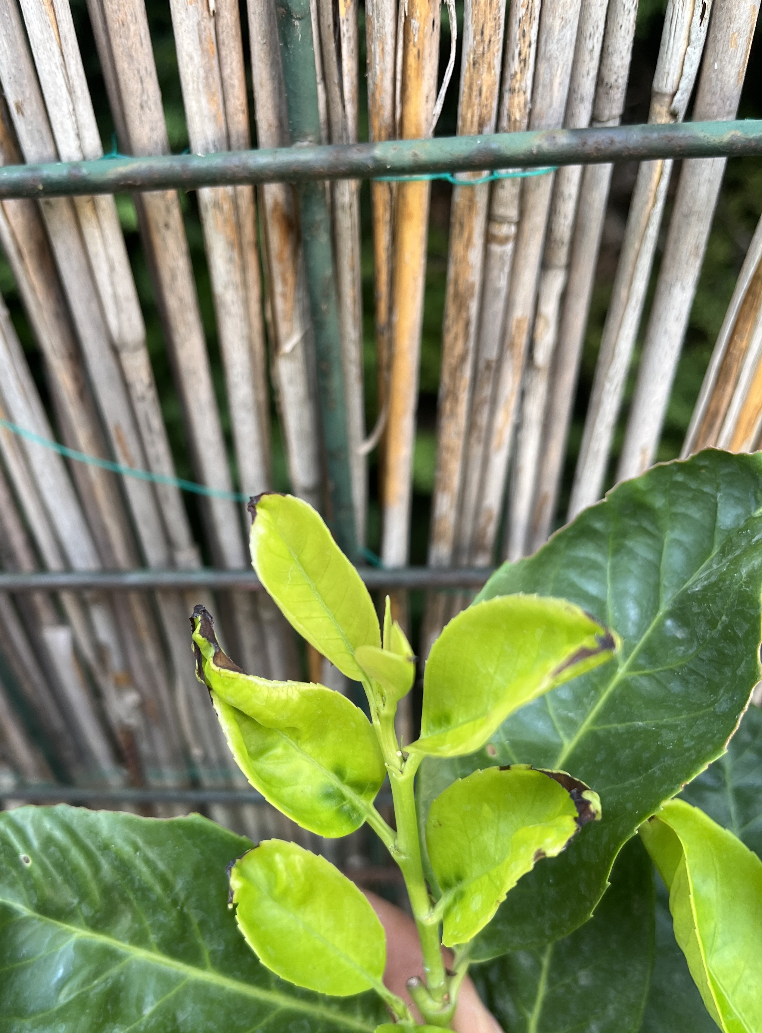 Kedves Attila! Napégés is lehet, de nagyobb a valószínűsége a tápanyagfelvételi zavarnak. Egy tövet fel kellene áldozni és megvizsgálni a gyökereket. Pl. kinőttek-e a földlabdából? Konzultálok kollégákkal is! Kérem türelmét!