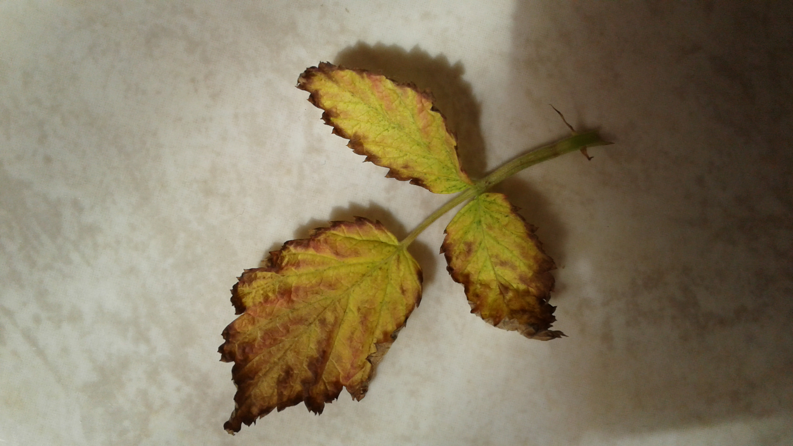 Tisztelt Szakértő! A feltöltött képek alapján meg tudná-e mondani, hogy mi baja lehet a málnámnak? Az apróbb levelek sárgulnak, nem szárazak, de előbb sárgás, majd vöröses, majd kb egy hét alatt a levél széle körben sötétre szineződik.