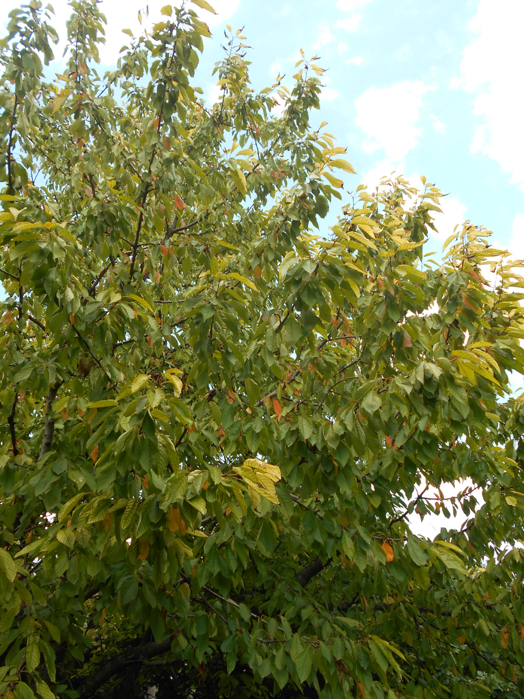 Az érés végére a másik (nagyobb) fa levelein is azt látom, hogy mintha a szokásosnál halványabbak, világosabbak lennének. A két fa közvetlenül egymás mellett van, a koronáik helyenként össze is érnek.