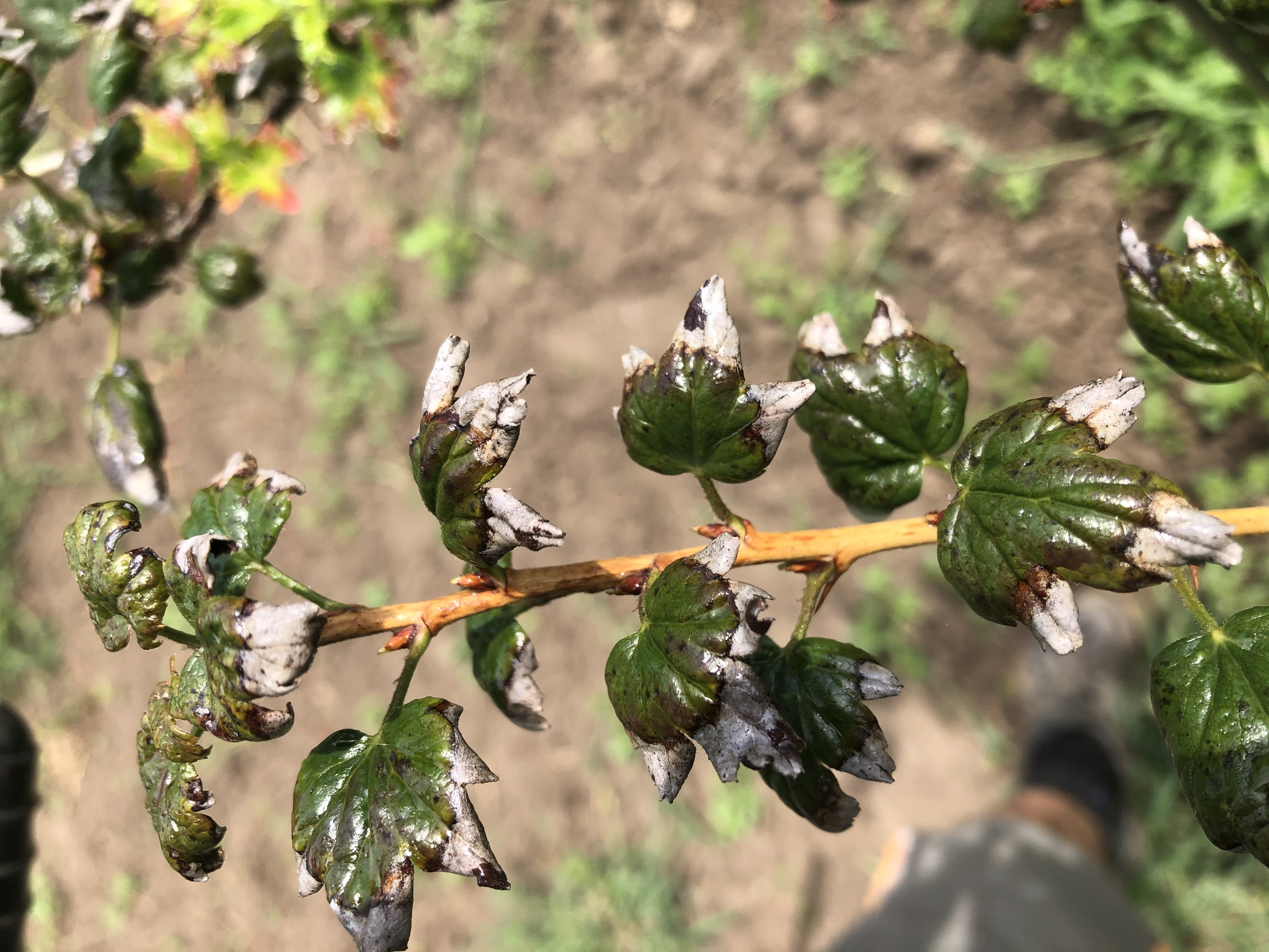 A betegség az amerikai lisztharmat. A kórokozó súlyos kárt okoz a köszméte levelein, vesszőin és sajnos a gyümölcsön is. Mindenütt előfordul, ahol nem vagy nem megfelelő gombaölő szerrel védekeznek.