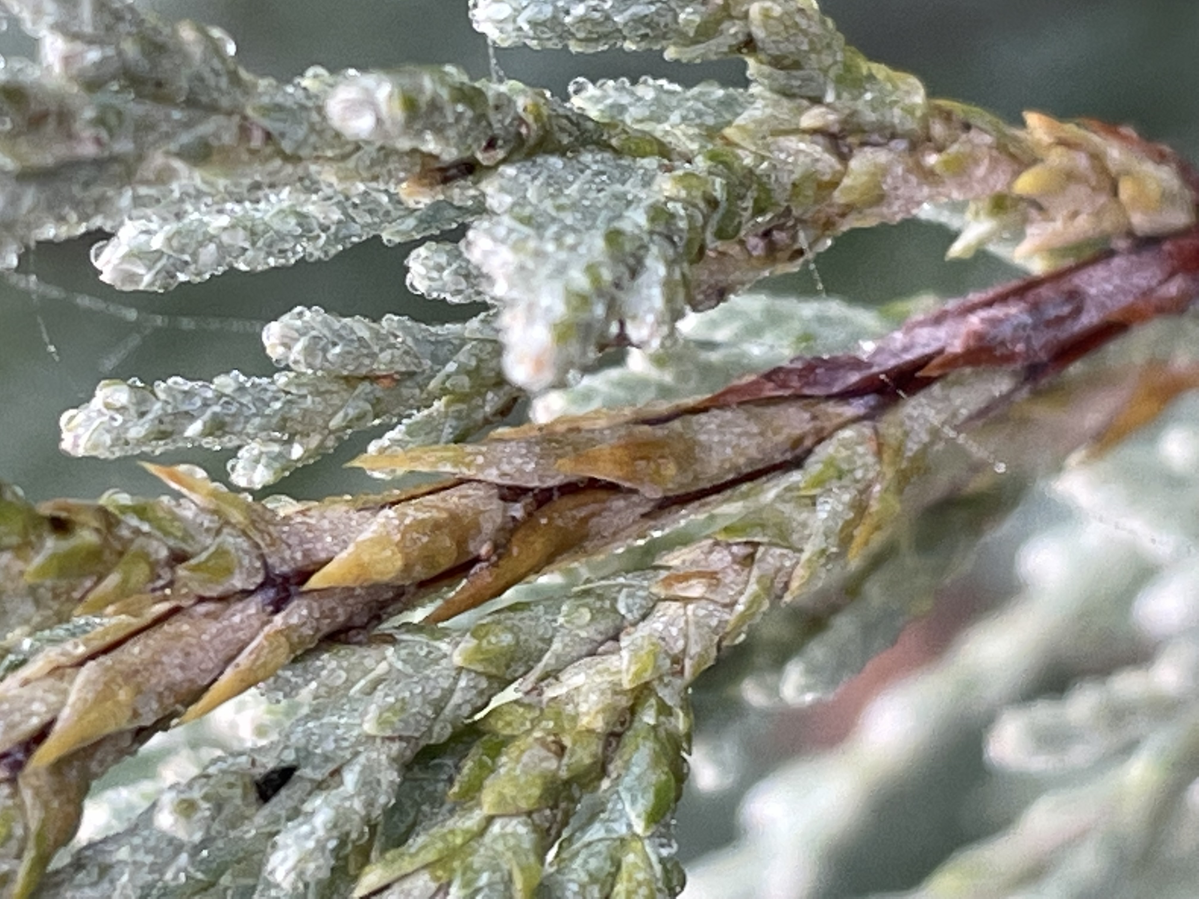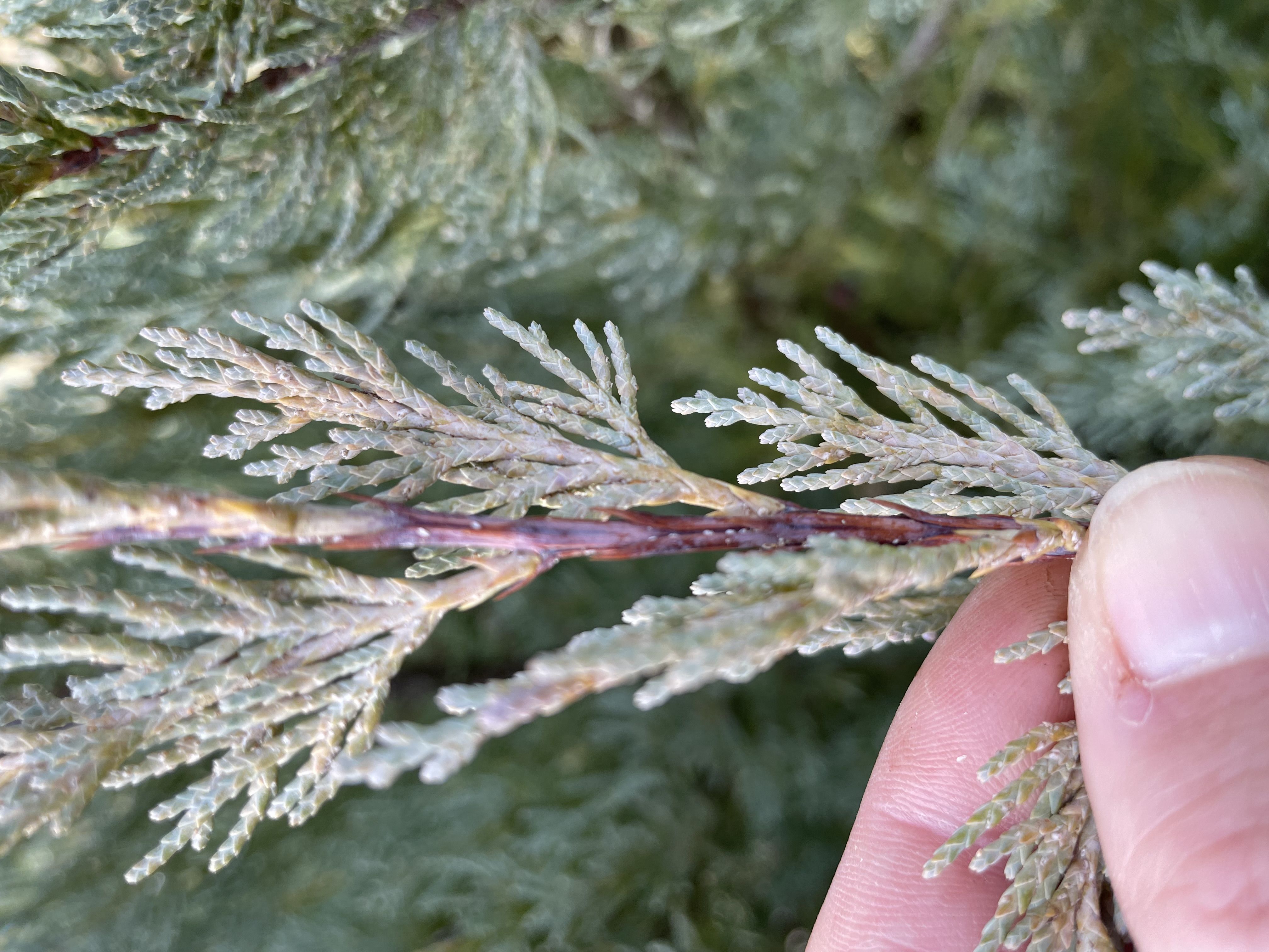 Az egyik borókám kilóg a sorból fakobb, barnásodó színével. Csináltam pár közeli képet, különböző hónapokban. Mi lehet a kártevő ami megtámadta és mivel védekezhetek ellene.
