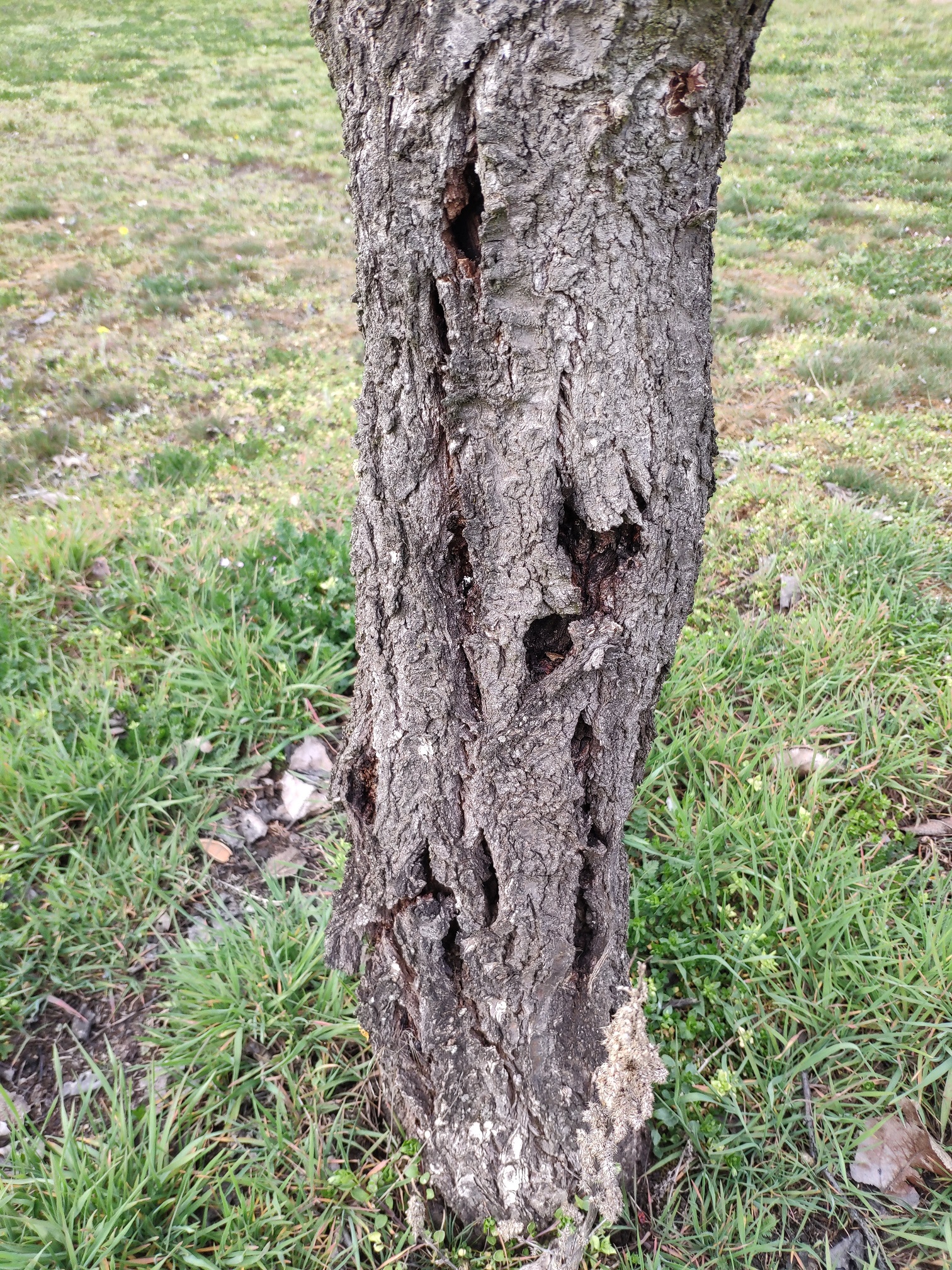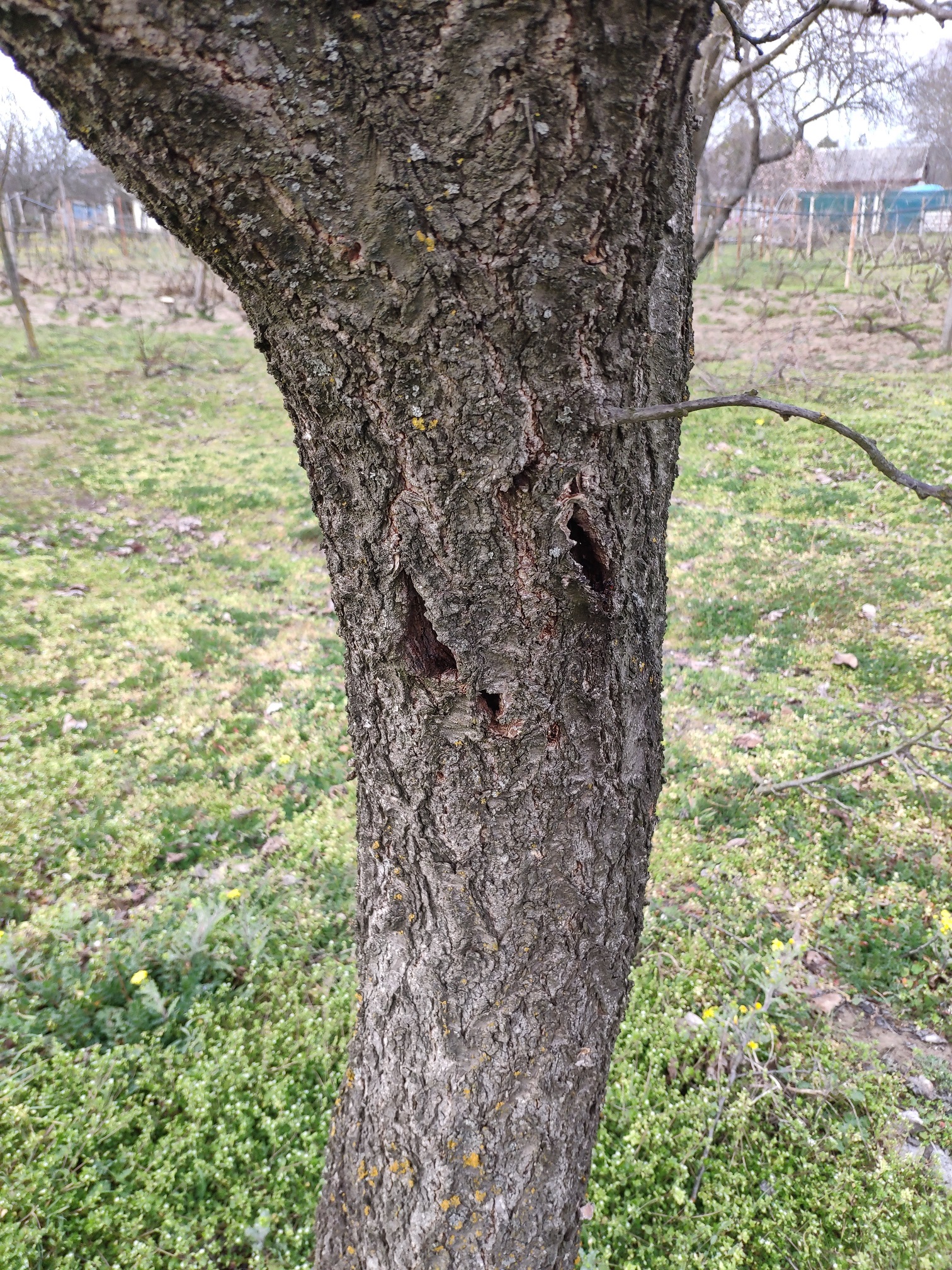 Kajszibarack törzsén hasadékok