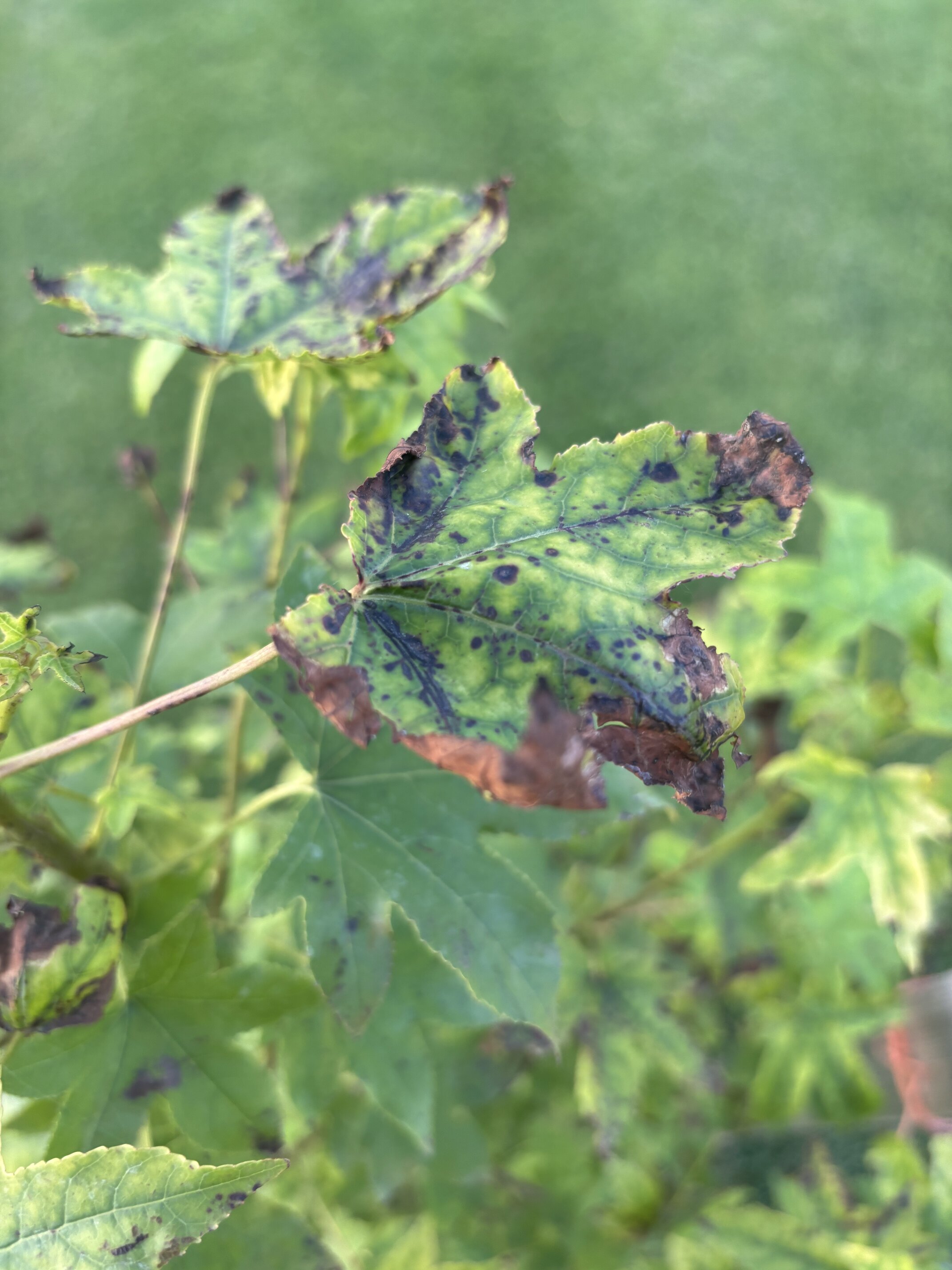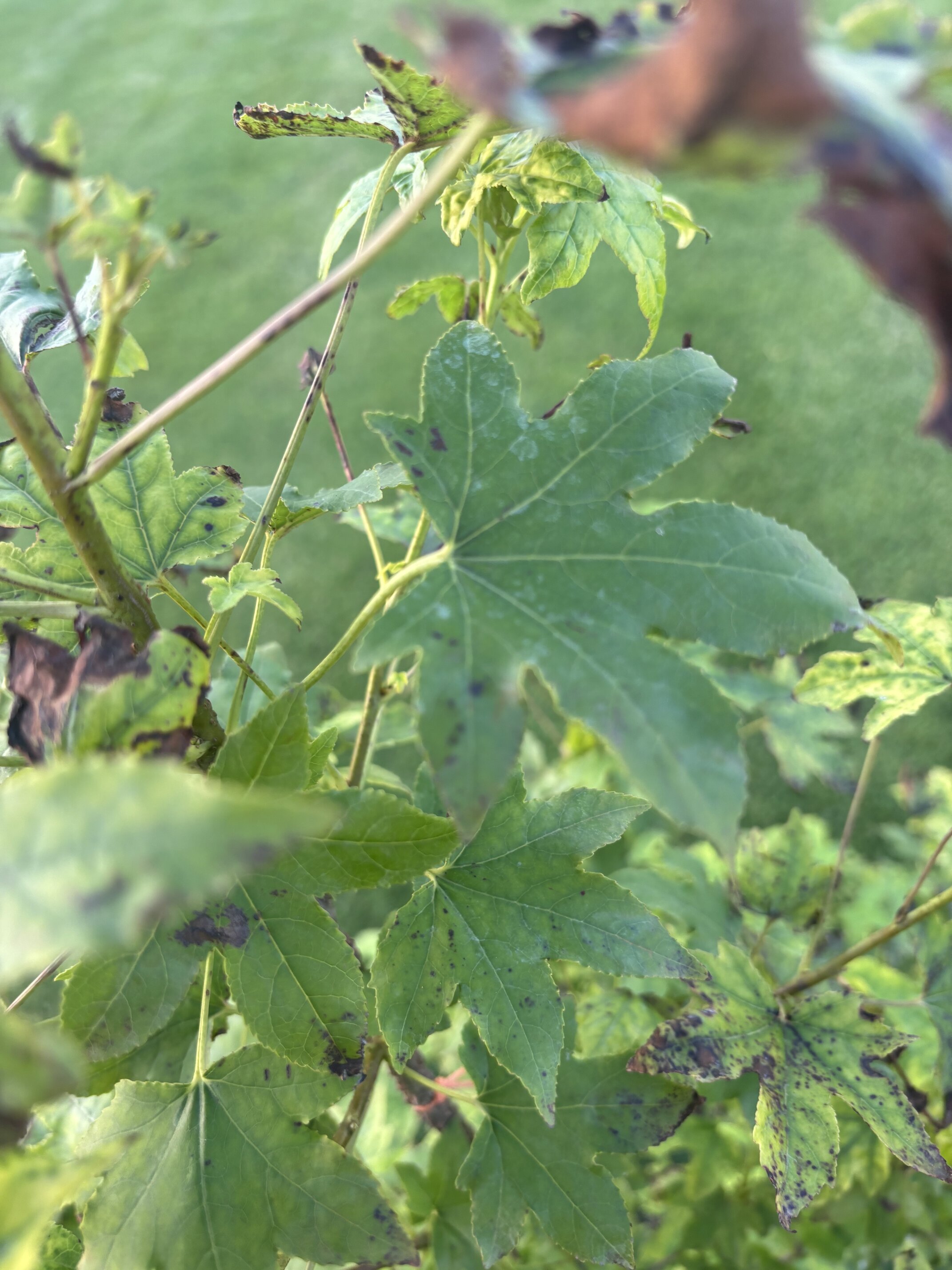 Gloeosporium nervisequum gomban okozta antraknózis látható a tápanyaghiányos leveleken. A növény láthatóan nem érzi jól magát a helyén. A meszes talajt abszolút nem kedveli, vízigényes is. A jelenlegi záporesős, meleg időjárás kedvez a kórokozó gombáknak, amelyek a legyengült növényeket könnyebben támadják. Folicur Solo, Signum, Amistar javasolt, de mindenek előtt a növény igényeinek megfelelő környezet, tápanyag szükséges.