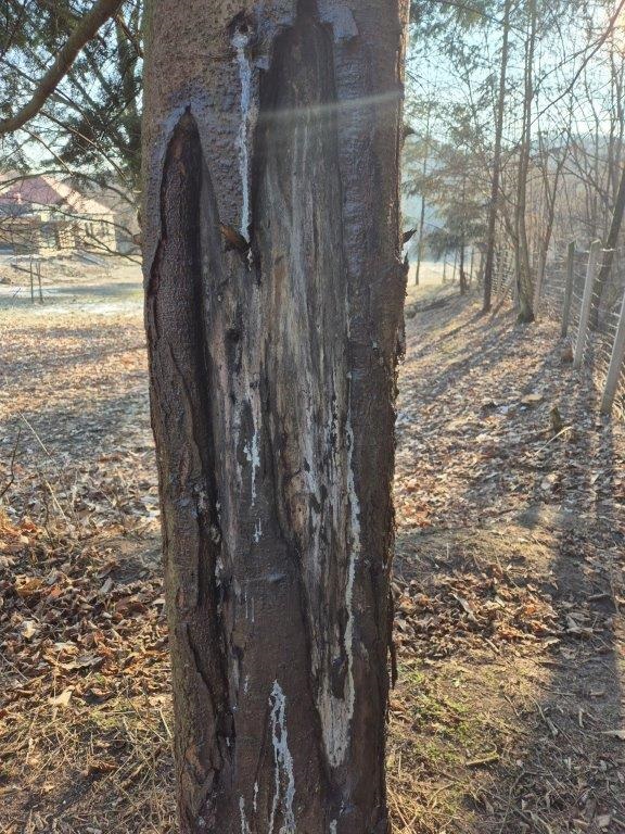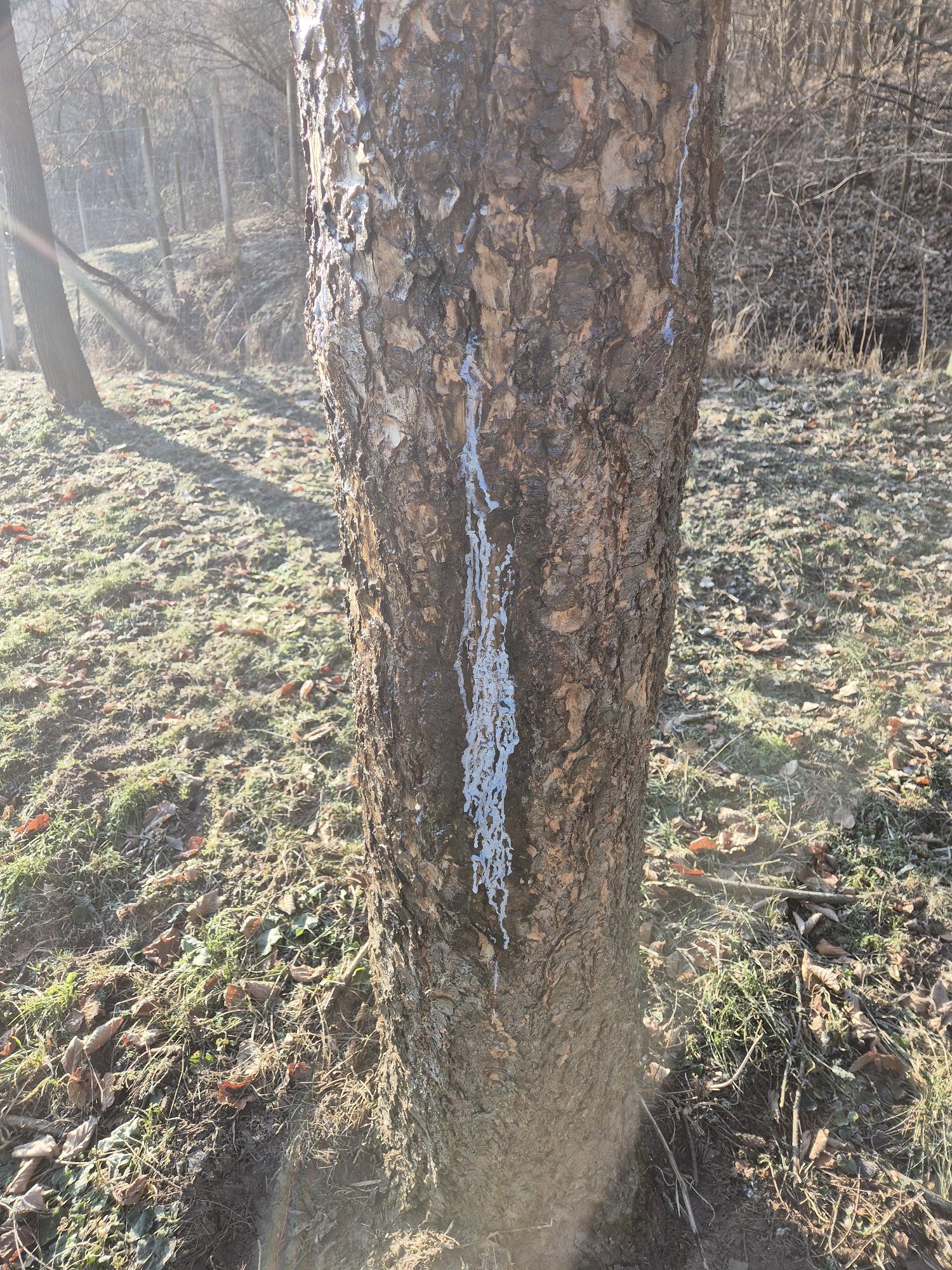 Így néz ki a fenyő maga (első kép) A másik kettő pedig a mellékelt kép szerint. A harmadika legfrissebb, idei kár, de talán ott a gyanta befogja a sebet.