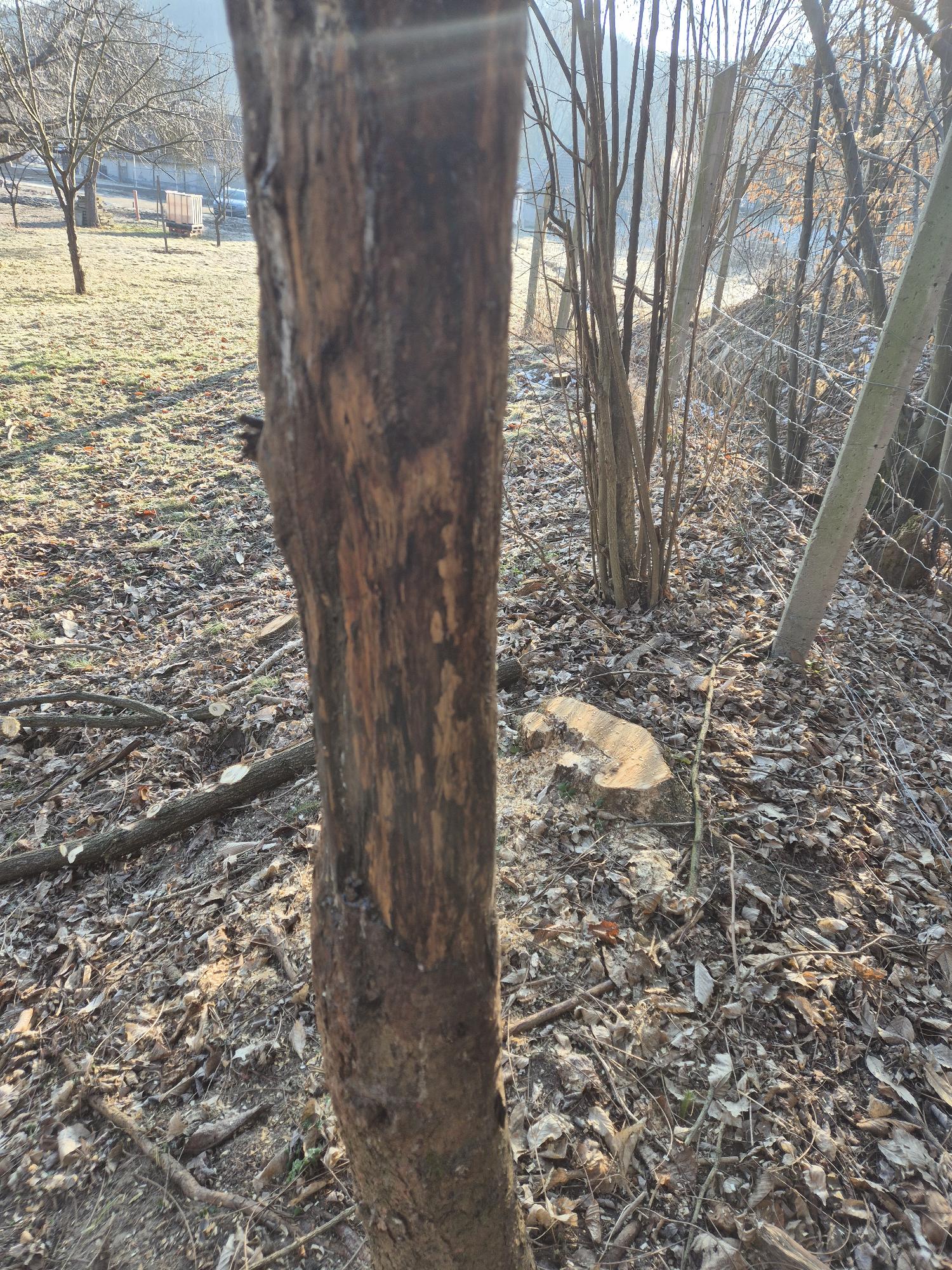Kedves Róbert! Látszik, hogy a fa gyógyul, de valamilyen gombabetegség egészen biztosan megtámadta a sebet, jó esetben "csak" korompenész. A sebet ki kell tisztítanai és por alakú réztartalmú gombaölő szerből (Champion, Bordói por) sűrű pépet készíteni és azzal bekenni vastagon, majd jutacsíkkal vagy más jól szellőző anyaggal (géz, fásli) körbekötni a kritikus magasságig. Érdemes lehet a fákat körbekeríteni 2-2,5 méter magasságig erősebb drótfonattal. Illetve helyezzen ki vadriasztót is.