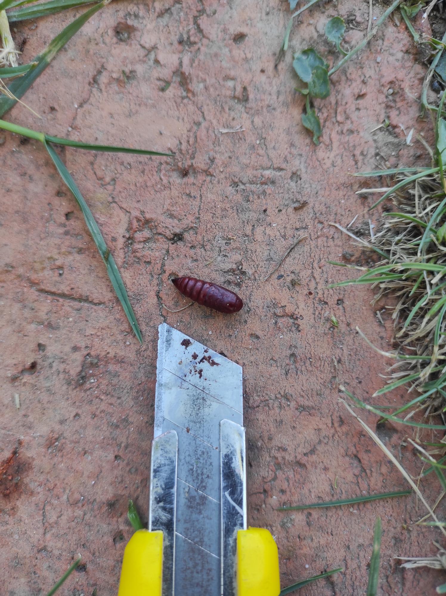 A járatokban a mellékelt képen látható lárvákat találtam, kb 2 cm hosszúak, az egyik már báb volt.