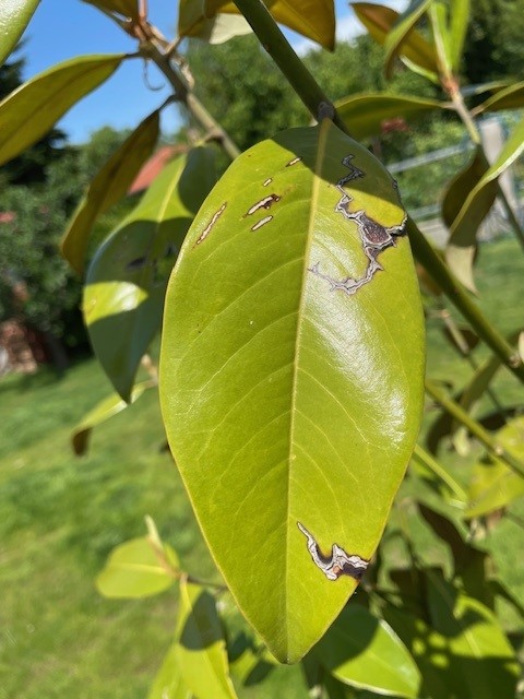 tavaly augusztusban elültetett örökzöld magnólia levelei lyukasak lettek. A képeket mellékelten küldöm. Mi okozhatja ezt és hogyan lehet kezelni?