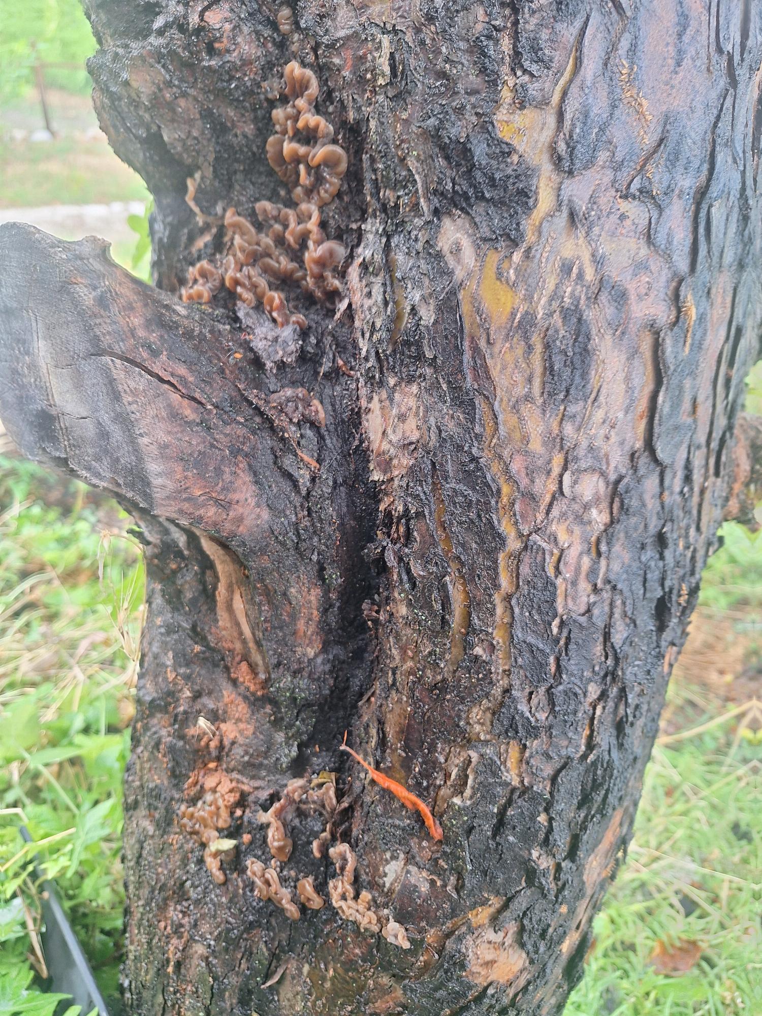 Van egy almafánk, amit valamilyen bogár elkezdett fúrni és gombákat is találtam rajta.