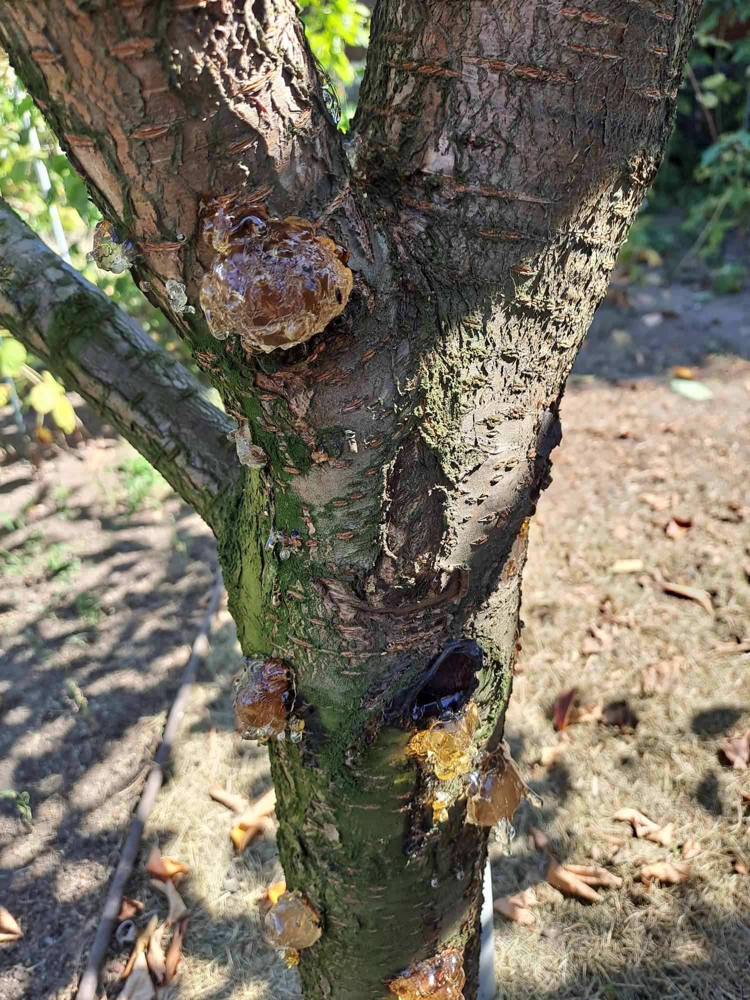 Mitől lehetett ilyen mézgás a meggyfa? Érdi bőtermő, az idén is sok gyümölcs volt rajta. Lemosó permetezés, monilia elleni és cseresznyelégy elleni permetezés is volt. 2-3 hete volt a metszése, akkor vettem észre a mézgásodást.