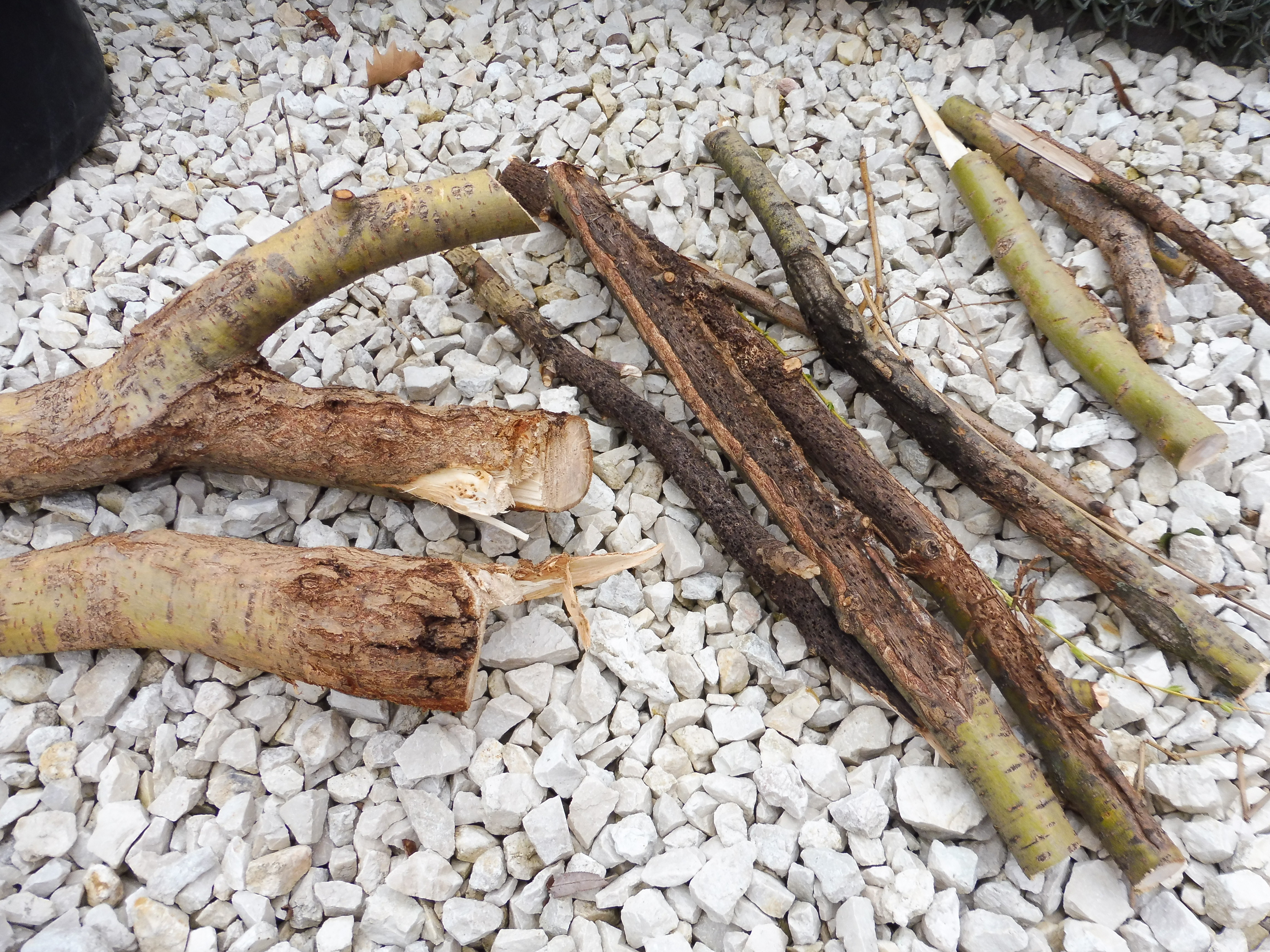 A fűzfánkon idén tavasszal vettük észre, hogy több ágán is olyan sérülések vannak, mintha szú támadta volna meg. A sérült ágak nagy részét levágtuk, a vágások helyét, mint mindig, fagéllel lekezeltük. A fa egyébként életerősnek tűnik, bőven van friss hajtása, de idén mintha a szokásosnál több száraz vékony vesszőt dobott volna el.