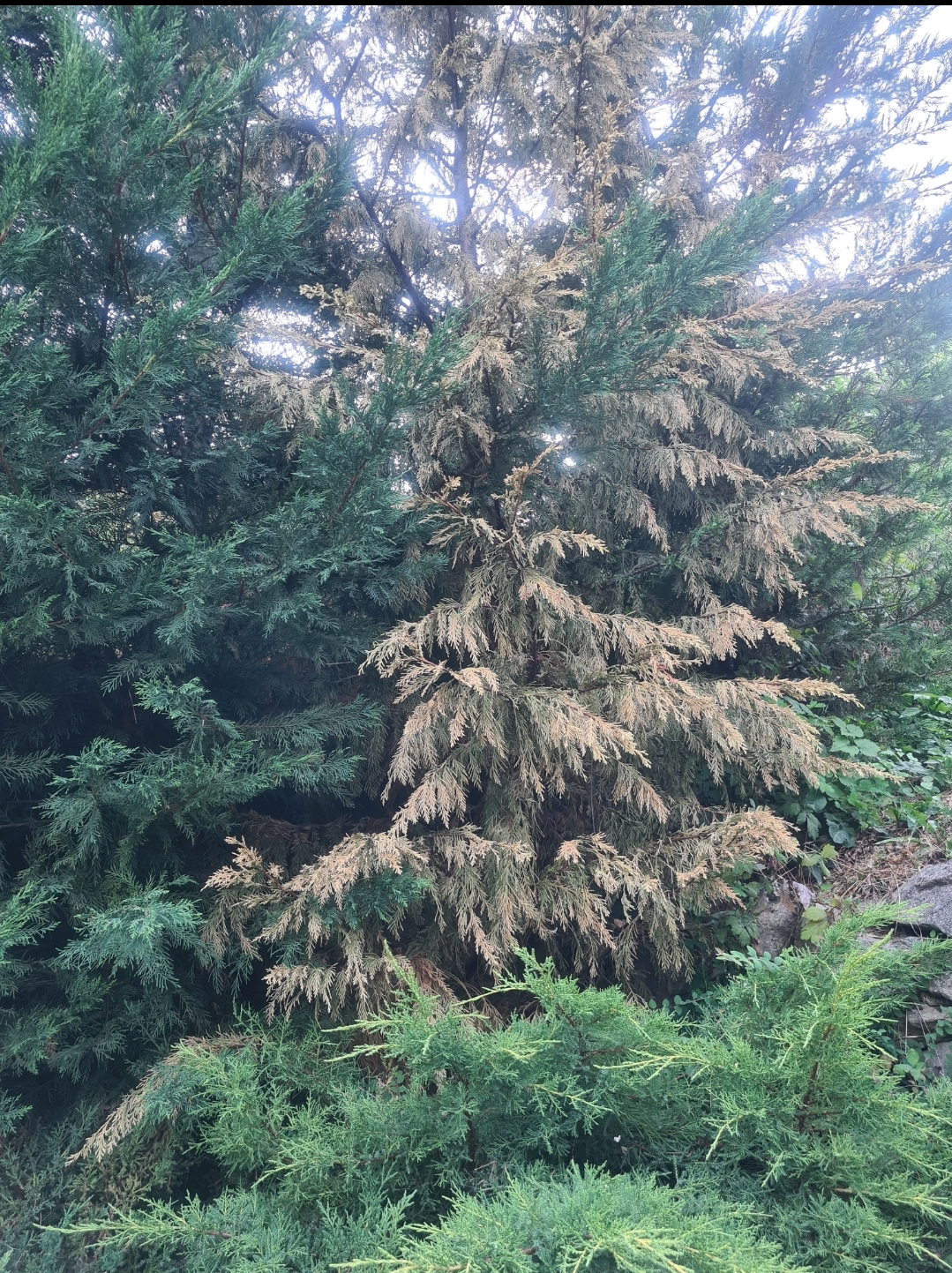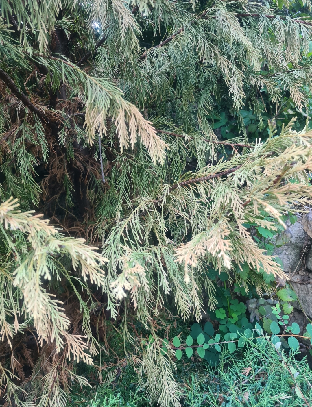 A szélsőséges időjárás nagyon meggyörti az örökzöldeket. A kabatinás betegség a legvalószínűbb. A növényt jó kondiban kell tartani megfelelő öntözéssel és magas kálium- és magnéziumtartalmú műtrágyával. Rezes, illetve felszívódó gombaölő szeres (Amistar Top) permetezés 10 naponta váltogatvan segíthet.