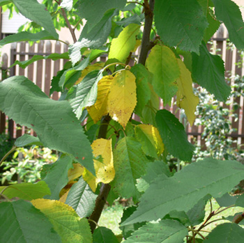 A mellékelt képen (fiatal cseresznye fa) kezdődő blumeriellás levélfoltosság látható. Másik meggy fámon blumeriellás levélfoltosság nem észlelhető azonban a sárgulás néhány levélen szintén jelentkezik. Összefügésben van a fenti betegség a teljes sárgulással és mi a teendő?