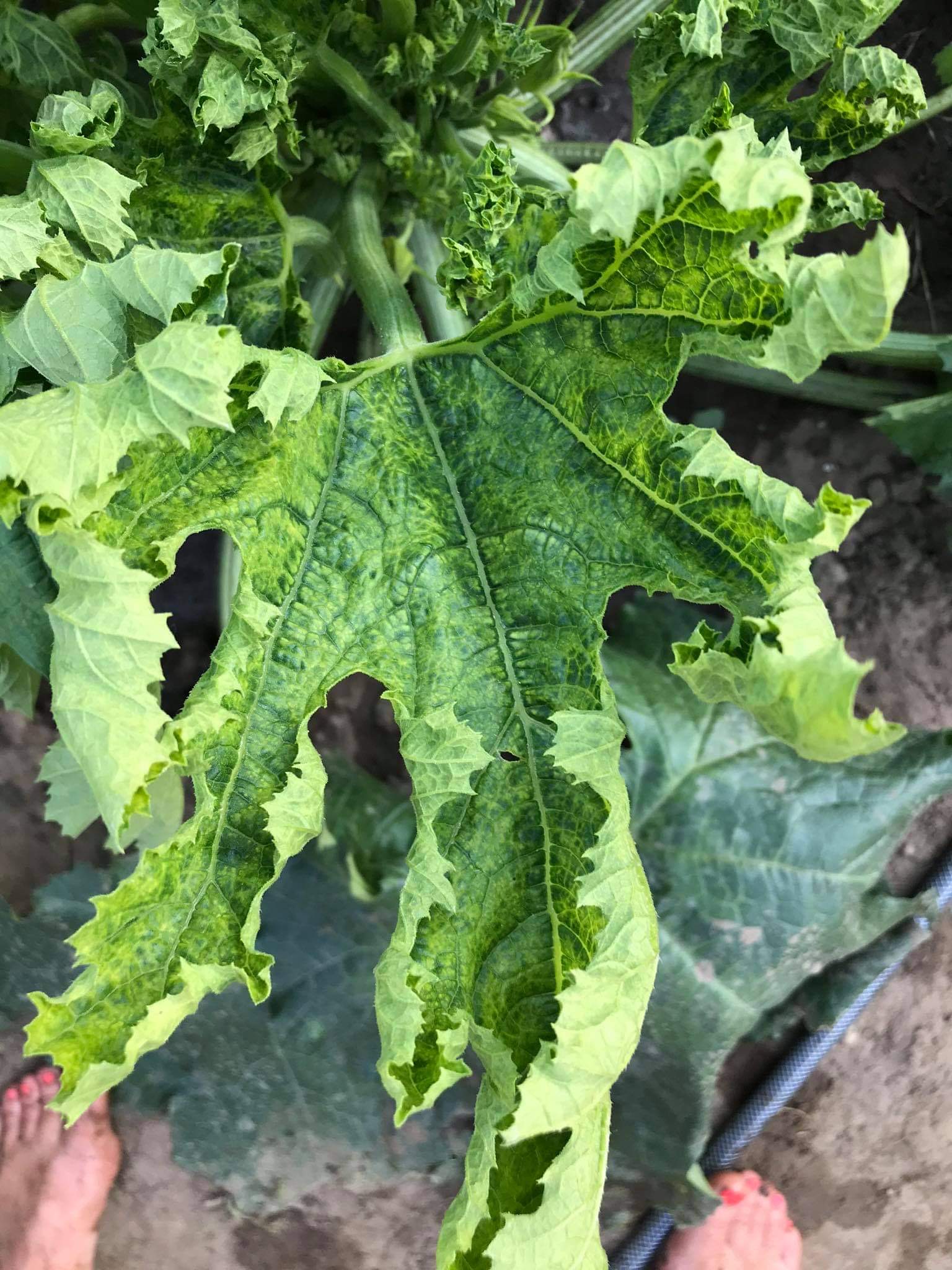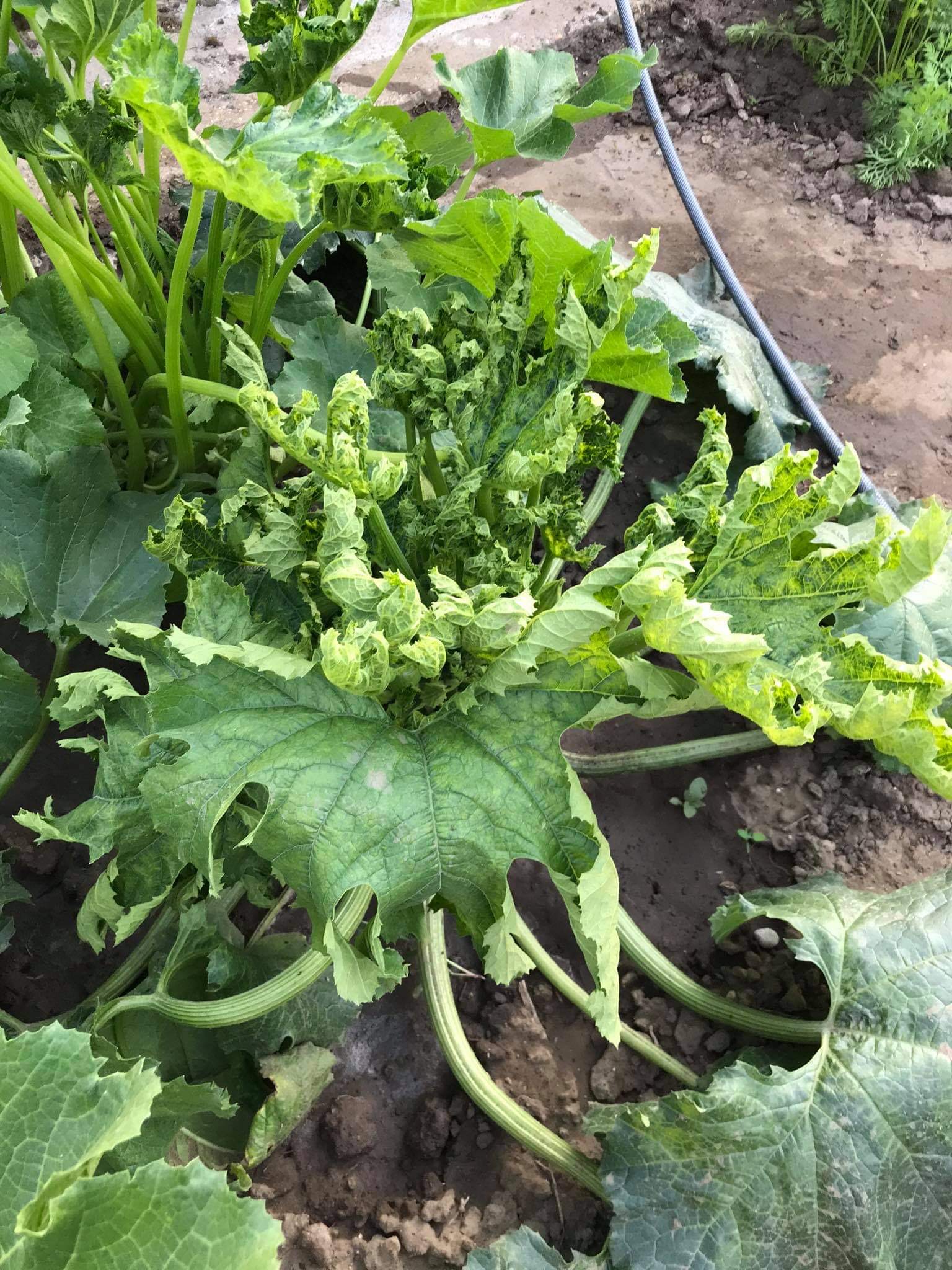 Szeretnék segítséget kérni. A szabadba ültettünk cukkinit és pár napja a levelei el kezdtek befelé pöndörödni. Vannak rajta sárga és barna részek.