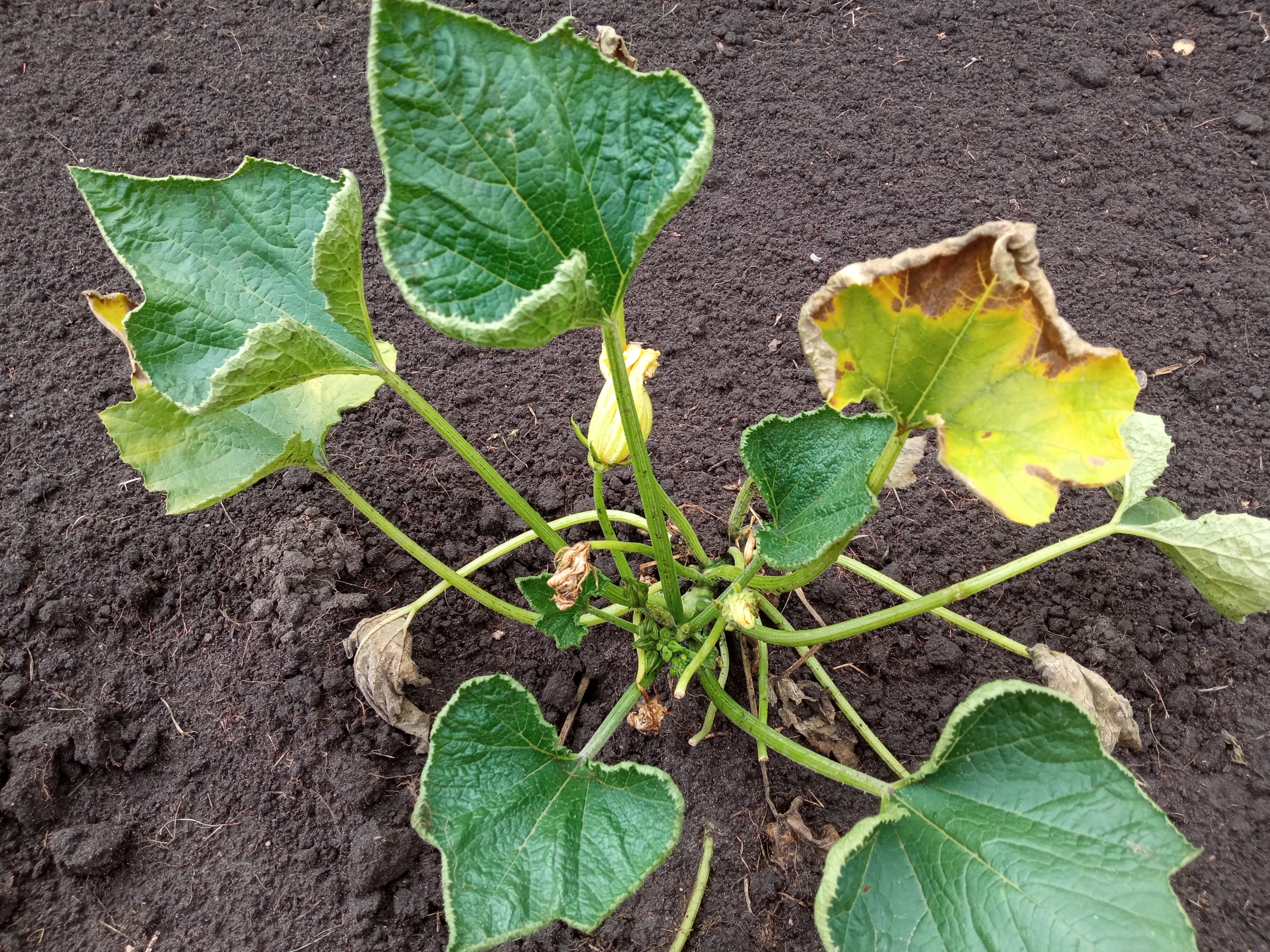 Tisztelt Szakértők! Egy nagy esőzés után a cukkinim elkezdett haldokolni, a rajta lévő zöldség kezdemények csúcsa elkezdett sárgulni, felpuhult, megállt a fejlődésben és rothadásnak indult. A beteg részeket leszedtem, de pár nap múlva a leveleken sárgult-barnult foltok jelentek meg, lekókadtak, míg egyes leveleinek a széle bepödörödött. A korábbi kommentekből a kálium-kálcium hiányra tippelek, de lehet, hogy valami komolyabbról van szó?