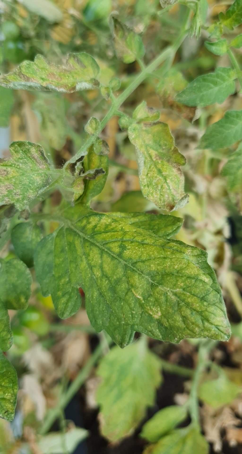 Tápanyaghiány, vagy tápanyagfelvételi zavar, fülledtség a fóliában.