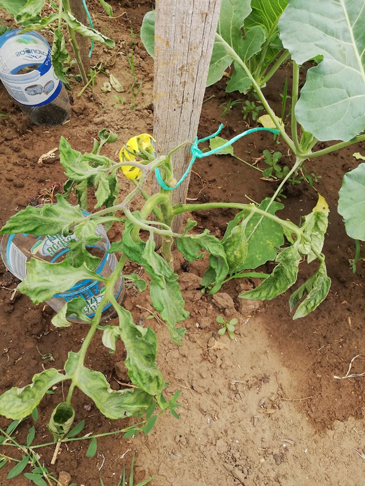 Balkonon, magaságyásban nevelt paradicsomom a nyaralásból visszatérve így fogadott. Az elszáradt leveleket eltávolítottam. Hogyan tudnám megállítani ezt a folyamatot, hogy ne menjen tönkre az egész növény? Permetezés, tápoldat? Ha permet, lehetséges lenne valamilyen házilag megoldható szerrel is, vagy mindenképp erősebb permetszer javasolt?