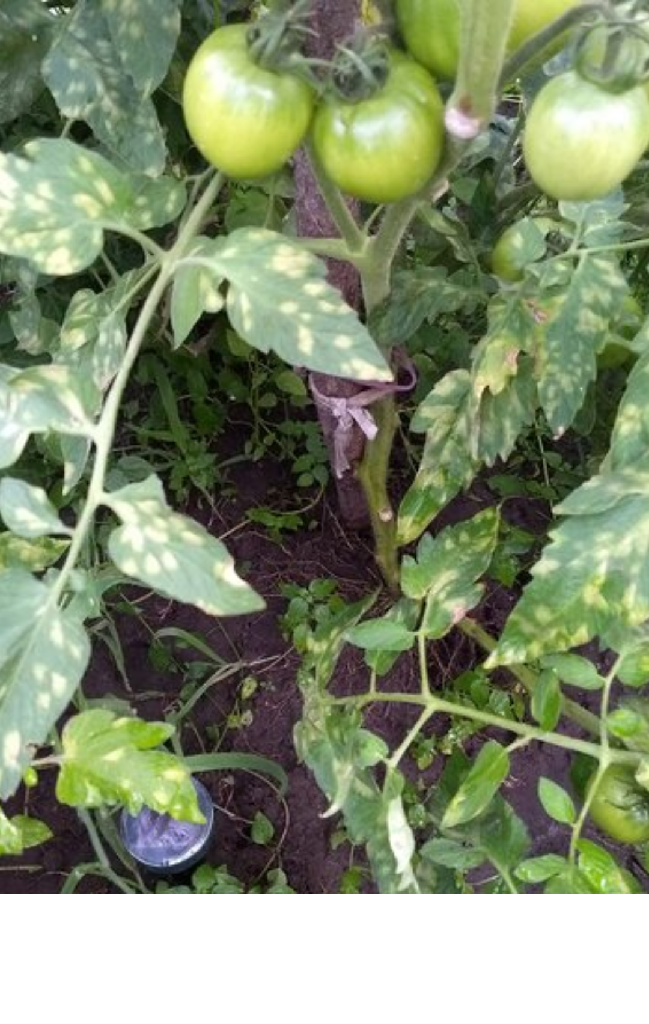 Tisztelt Szakértö! A fóliás paradocsomlevelejen a képen látható foltok kezdödtek. Tápanyaghiány vagy betegség? Hogyan kell eljárni? Köszönöm!