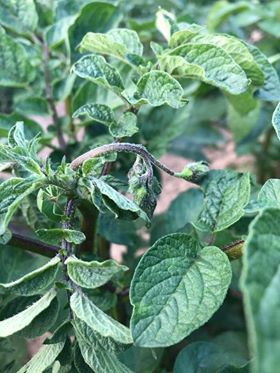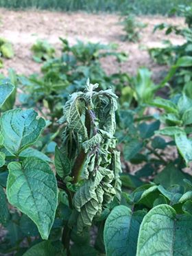 Édesanyámnál a burgonyában a bogarakon kívül két betegségre utaló jelet találtam. Az egyik a levél foltosodása, a másik pedig az, hogy néhány hajtásvég ill. virág lekonyul, mintha kiszáradna, pedig kap elég vizet. Csatolok fényképeket. Szeretném tudni, hogy ezek komoly betegségek-e, illetve, hogy lehet és kell-e ellenük védekezni, és mivel. Valamint szeretném megtudni (mivel egyik oldalon olvastam ezt a levélfoltosság kezelésére), hogy mit jelen a fitopreparáció.