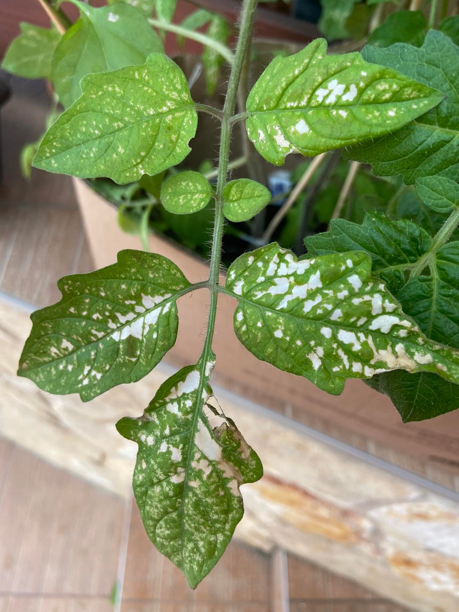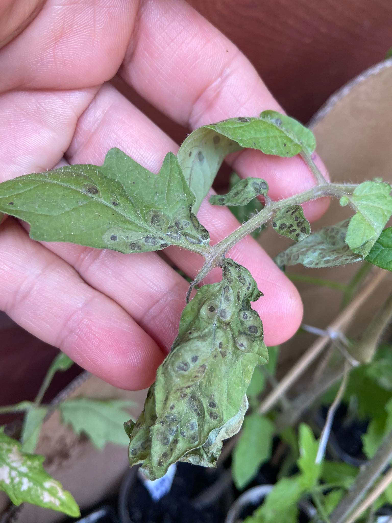 A paradicsom palánta levelein a csatolt képen látható foltosodás látható. Ez valamilyen betegség lehet? Ha igen, akkor mi a teendőm?