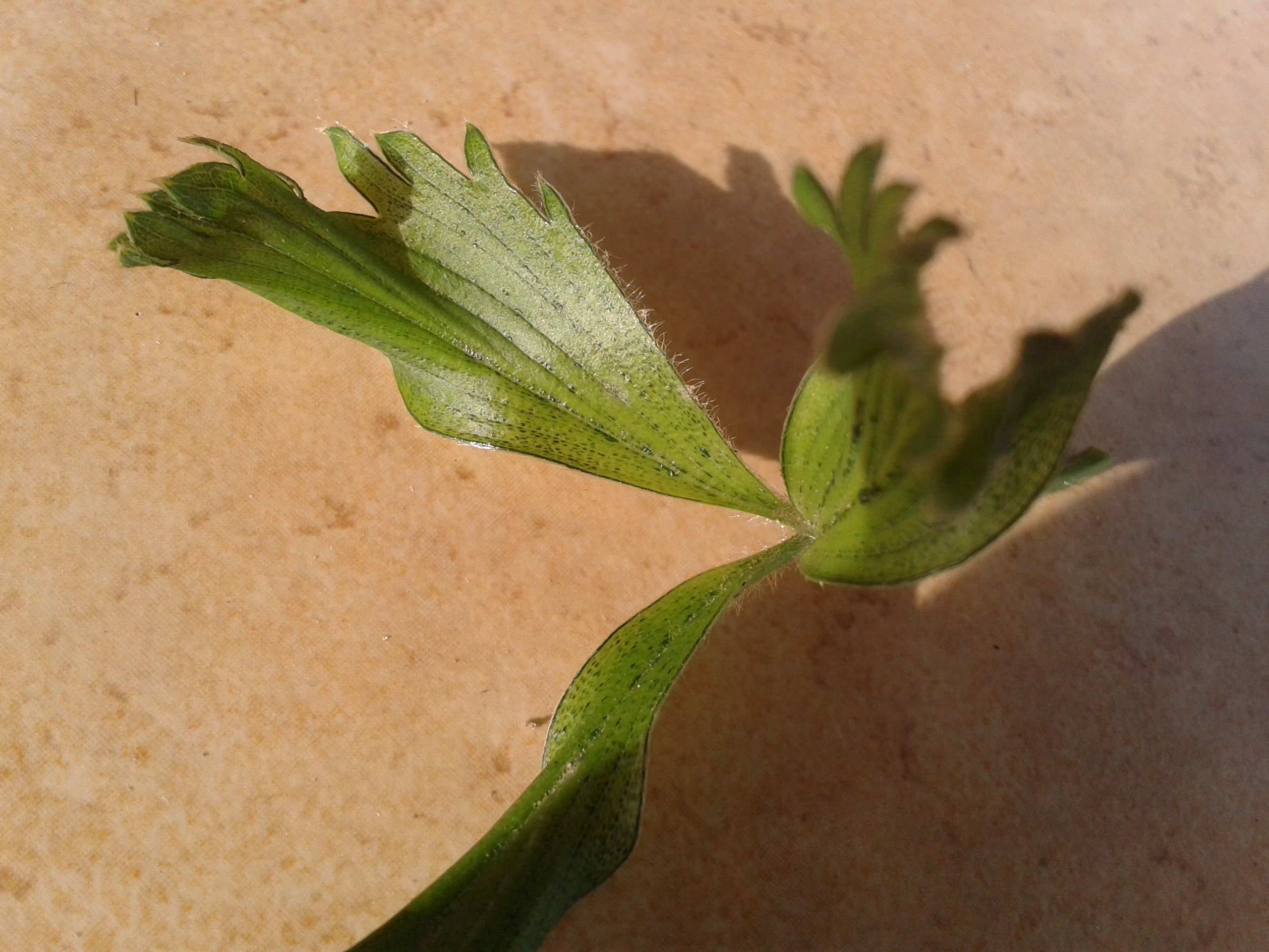 Van esetleg ötletük, hogy mi okozhatja az eper levelének képen látható tünetét?