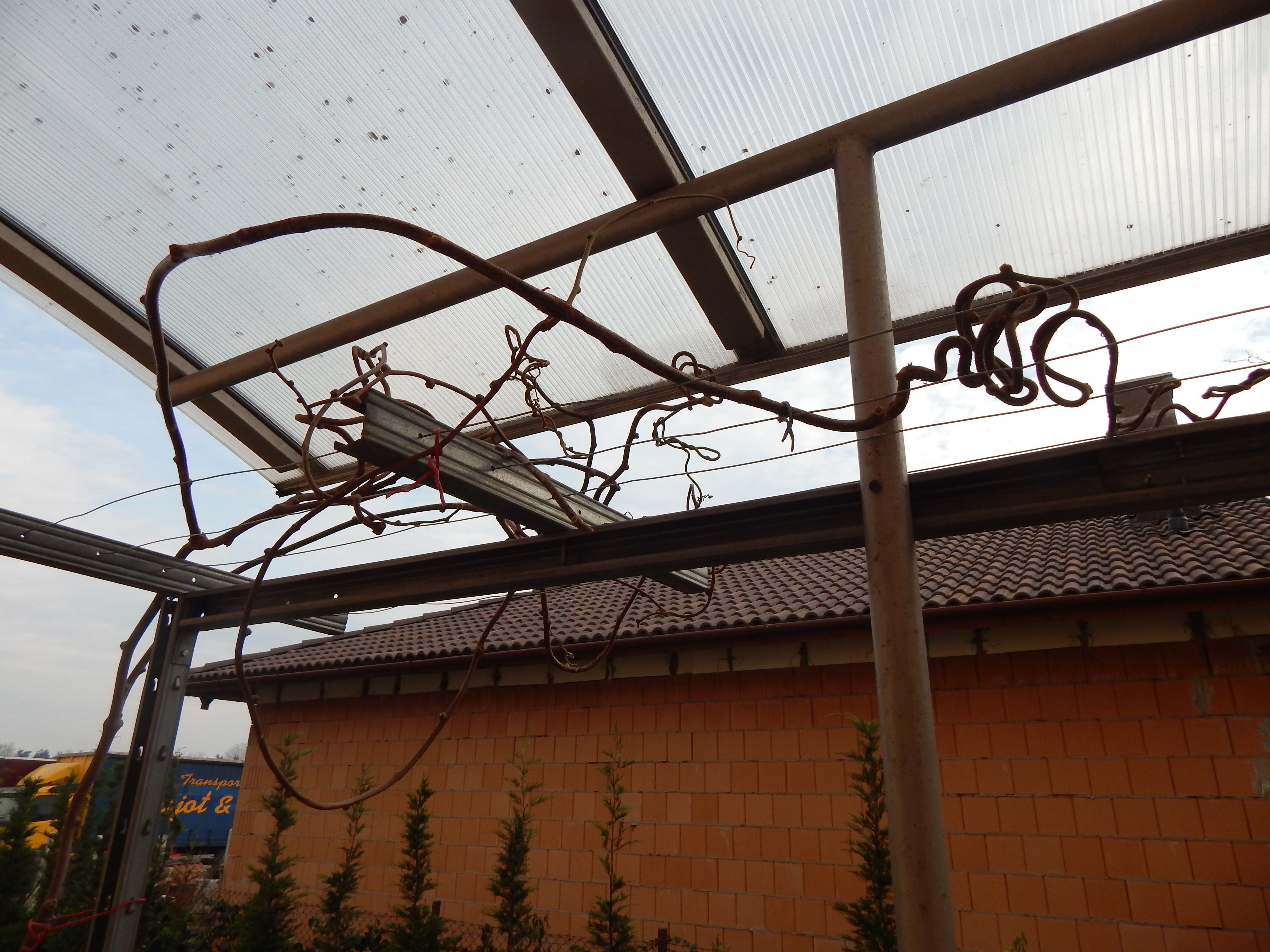 A másik, féltető alá bevezetett termő kivim nem virágzott. A féltető alatt nem egyenesek a hajtások, hanem kunkorodottak, egymásba kapaszkodóak, tekeredettek. Még odébb van a metszés ideje, de mit lehet ezzel kezdeni a metszés során? A polikarbonát féltetőn átáramló meleg okozhatta ezt a fajta hajtásokat? Hagyjam magára ezt tekeredett hajtáshalmazt, vagy vágjam le. Miből lesz akkor virág? Törvényszerű a féltető alatt ez a helyzet?