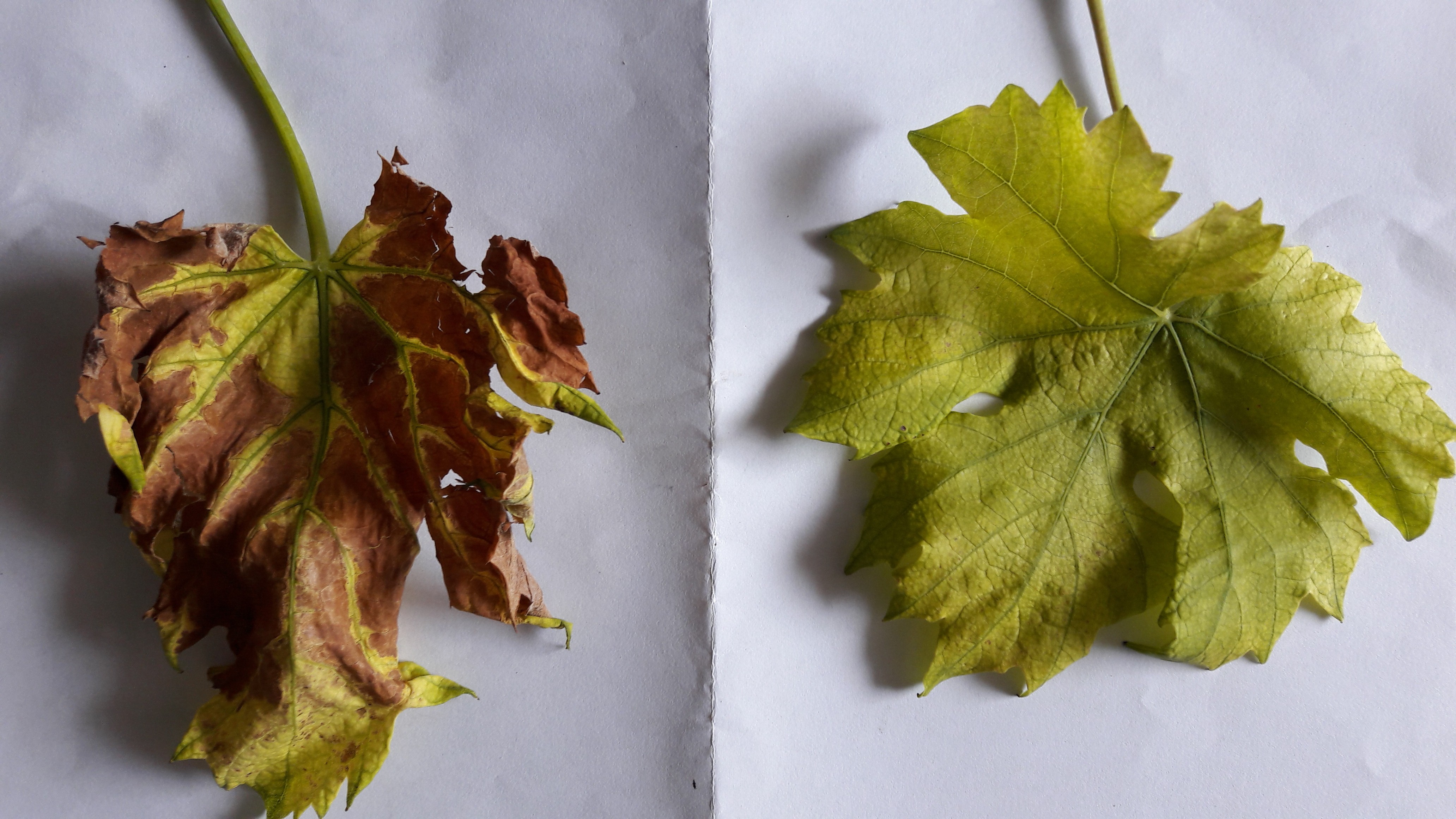 A tünetek alapján tápanyaghiányra gyanakszom. A baloldali kép inkább kálium, a jobboldali inkább vas hiányra utal.