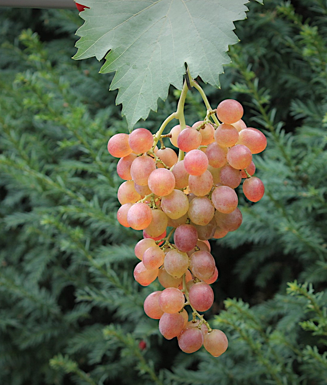 Három éve kaptam egy gyökeres szőlővesszőt mely az idén finom édes terméssel megajándékozott. A fürtök kb 200g-osak voltak augusztus közepére beértek. A bogyó mérete 17-18 mm. Akitől kaptam nem tudja a nevét. Kérem amennyiben a fotók alapján lehetséges a beazonosítása szíveskedjenek a nevét megírni részemre.