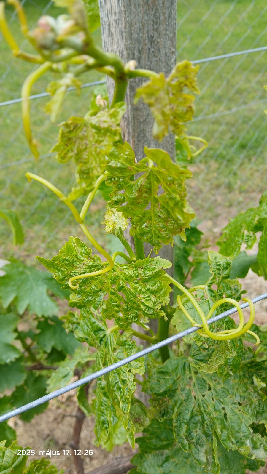 Üdvözlöm! Segítséget szeretnék kérni, milyen probléma lehet ezzel a szőlővel? Egy permetezés volt. Armetil C,topas 100ec,flumite és miután megjelent néhány tőkén az ilyen levél nordox 75 wg t fújtam ki. Gyomirtót nem használt a környéken senki.. Kérem a segítségüket. Köszönöm szépen!