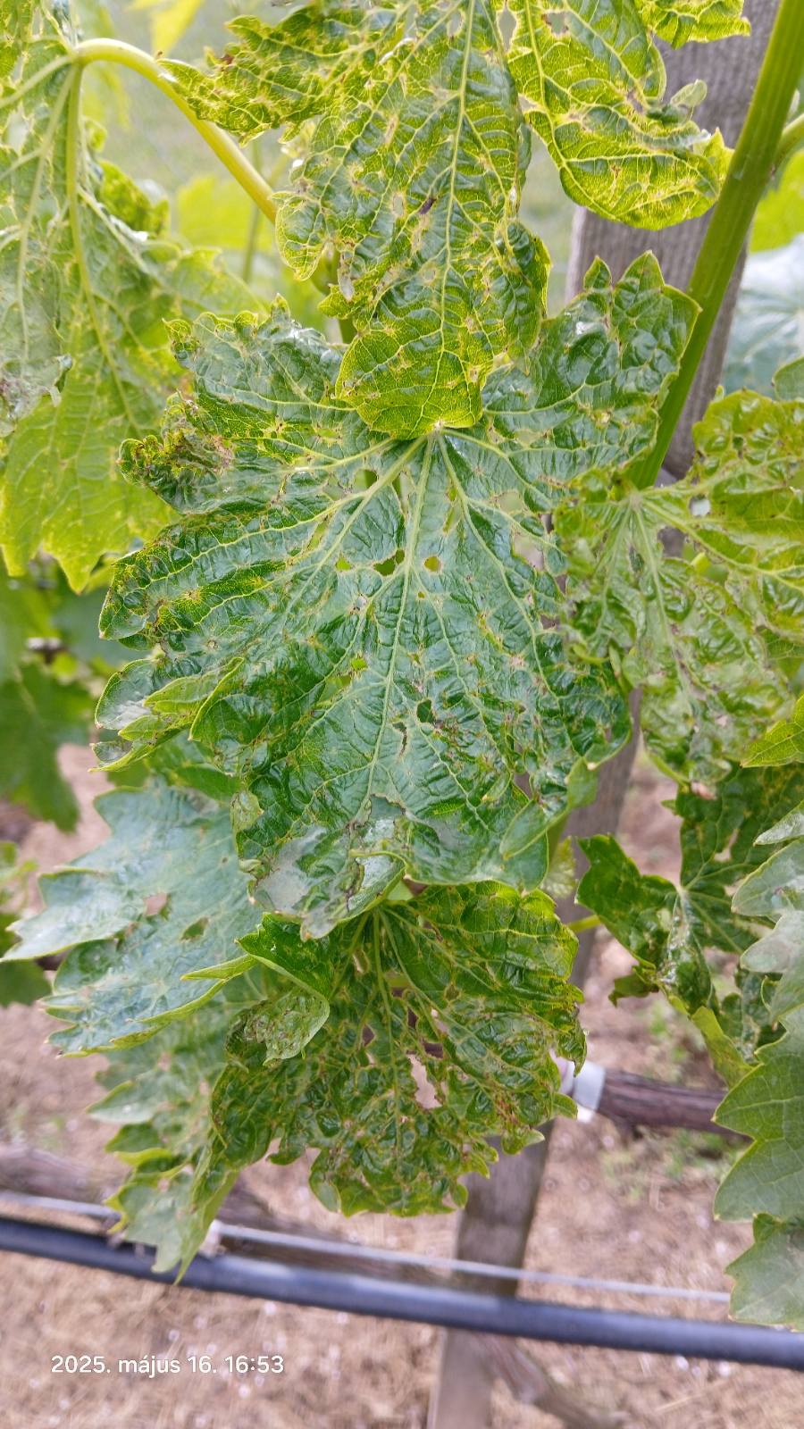 Kedves István. A kétféle réz hatóanyag /rézoxiklorid ill. rézoxid/, melyet néhány napon belül használt okozott némi perzselést - különösen a 2. képen látható. A felső képen a nagy levélfelület tipikus hormonhatású gyomirtó szer tünete. Egyik jellemző tünet, hogy az erezet áteső fényben szembetűnően áttetsző. Ezt Ön megvizsgálhatja. Vegyszeres gyomirtások vannak néhány szántóföldi kulturában, onnan is érkezhet permet - akár felszálló légáramlattal. Írja, hogy csak néhány tőkén láthatóak az ilyen levelek. Most nem tud tenni semmit esetleg a stressz feloldására használjon Amalgerolt. Ezt is csak akkor, ha sok a tünetes tőke.