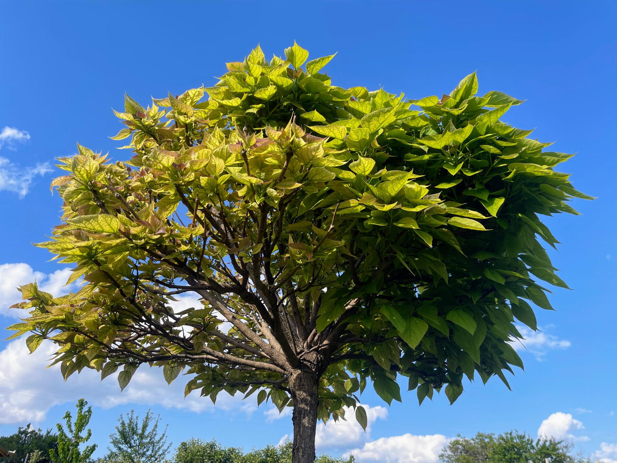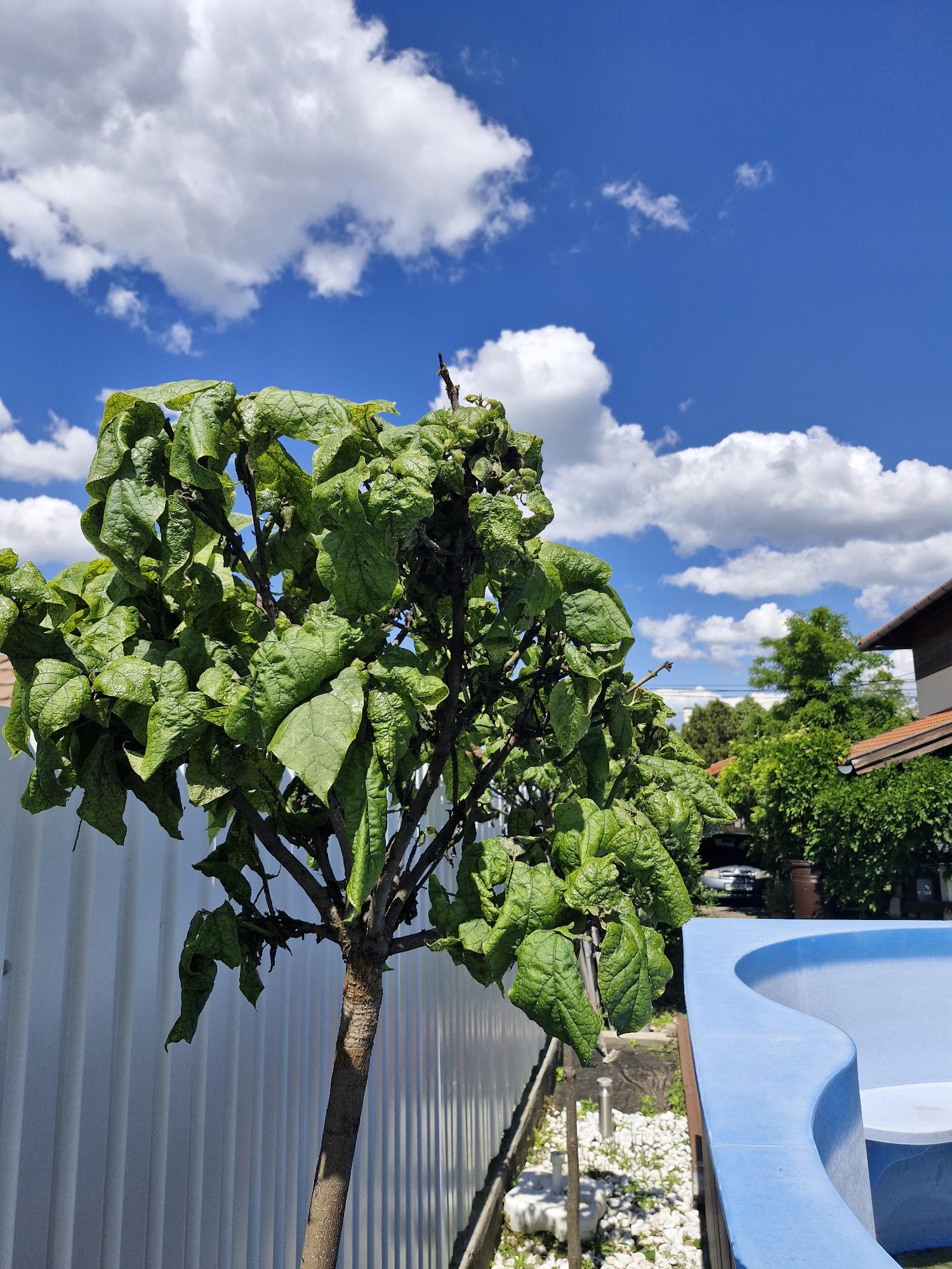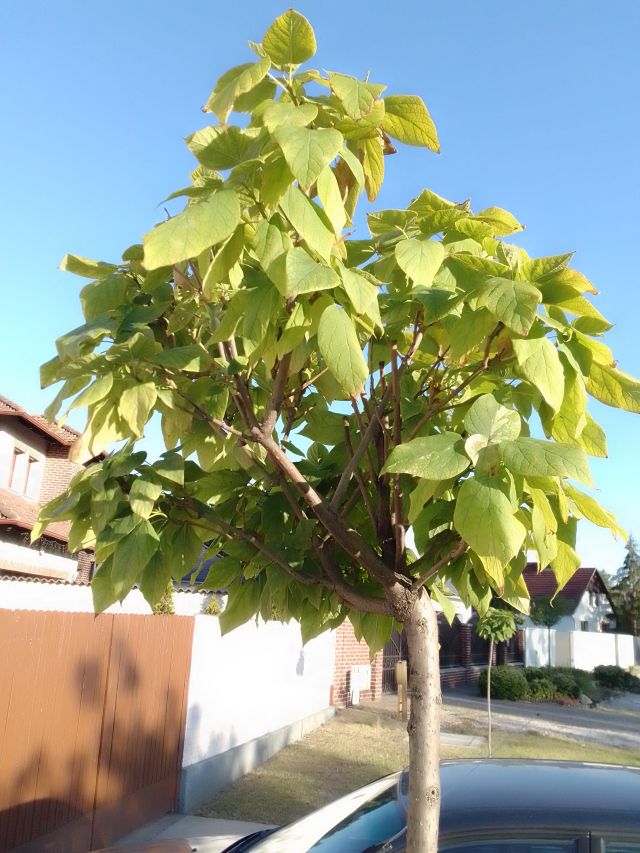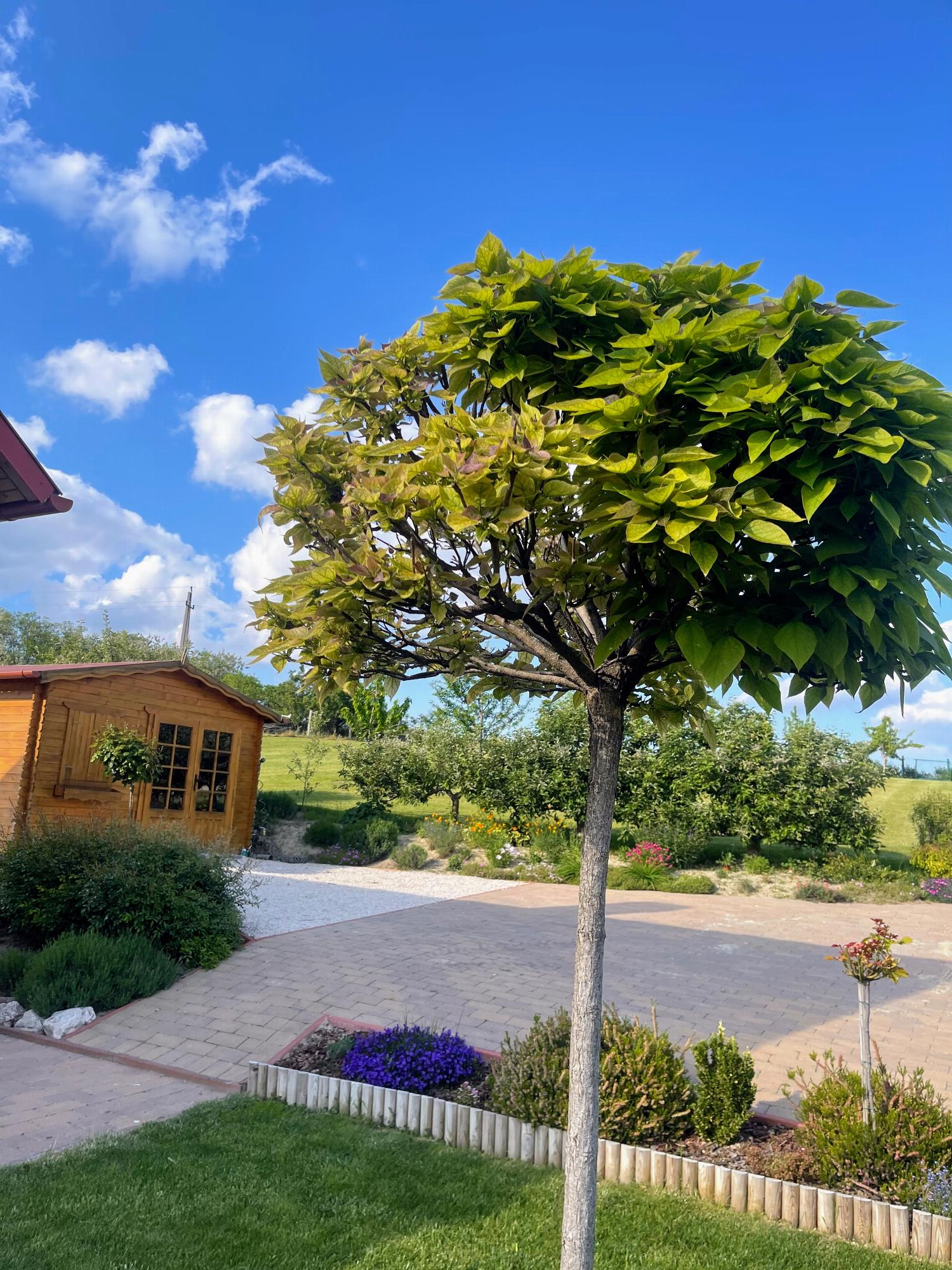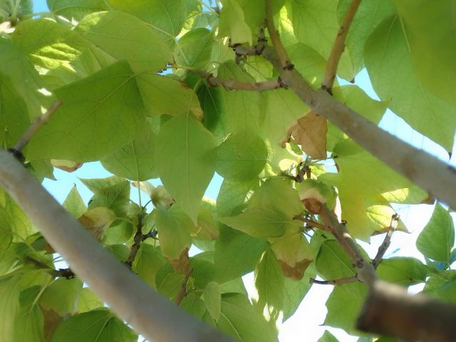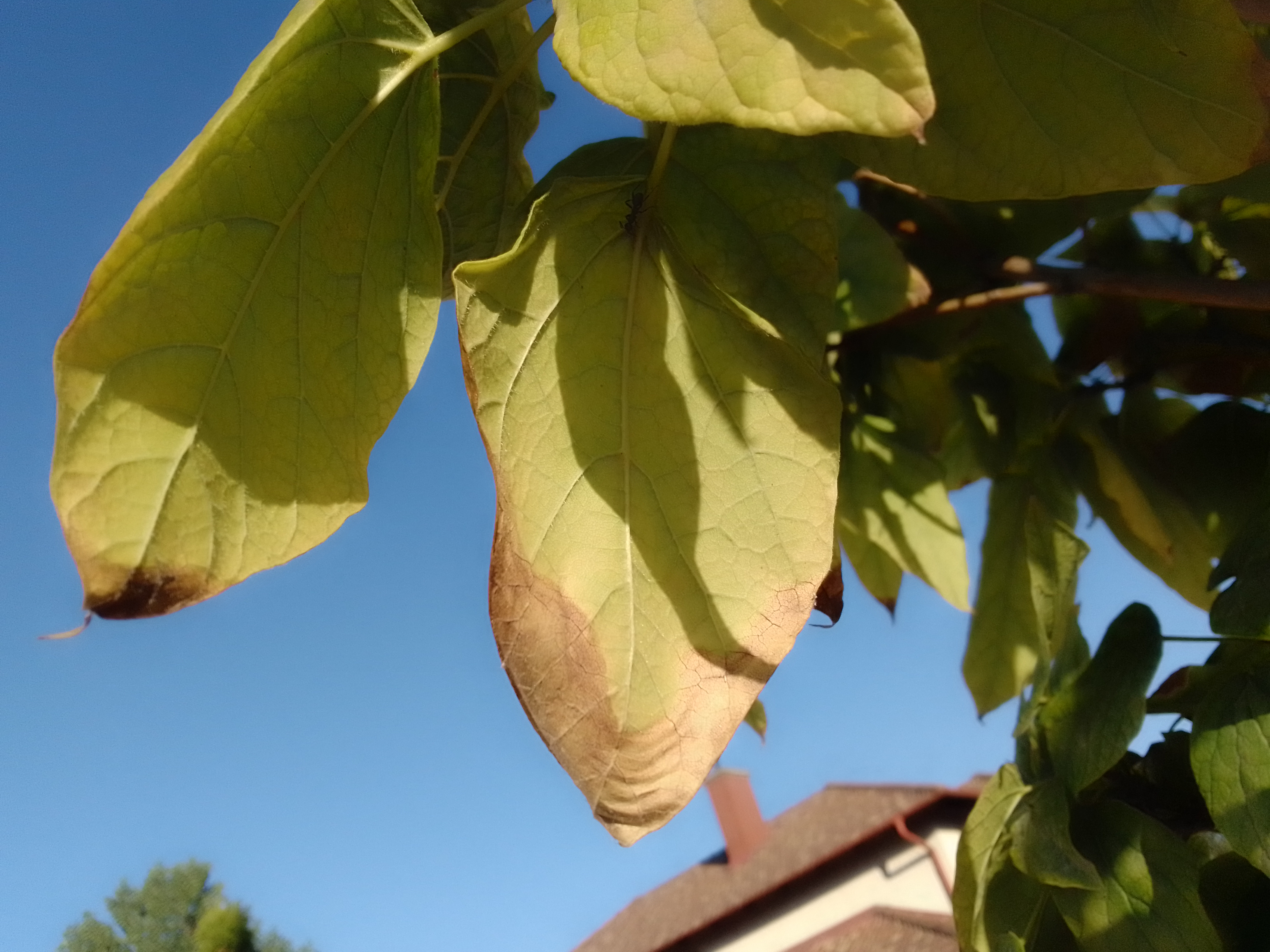Május végén ültetett szivarfánk jelenleg így néz ki. Érdeklődni szeretnék, hogy kell -e tartanunk valami betegségtől, ami megtámadhatta a fát illetve milyen lehetőségeink vannak, hogy szebbé tegyük? Válaszukat előre is köszönöm!