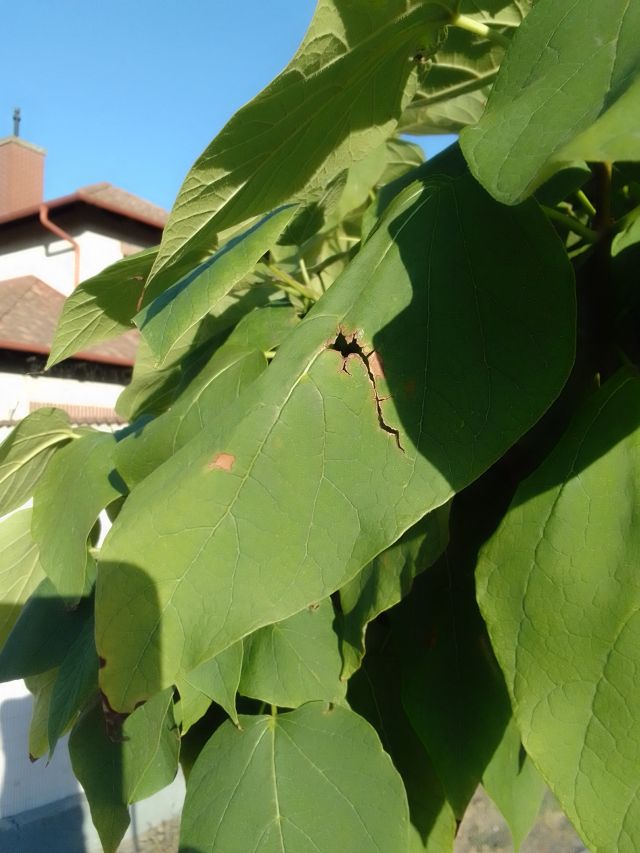 Idén tavasszal ültettük a mellékelt szivarfát.Szépen növögetett eddig (most mintha ez a folyamat lelassult volna). A problémánk a hangyásodás (de nem látunk élősködőt), valamint nemrég megjelentek a leveleken barna foltok a leveleken. Többször leszórtuk Mospilan-nal. Ön szerint mi lehet a gond?