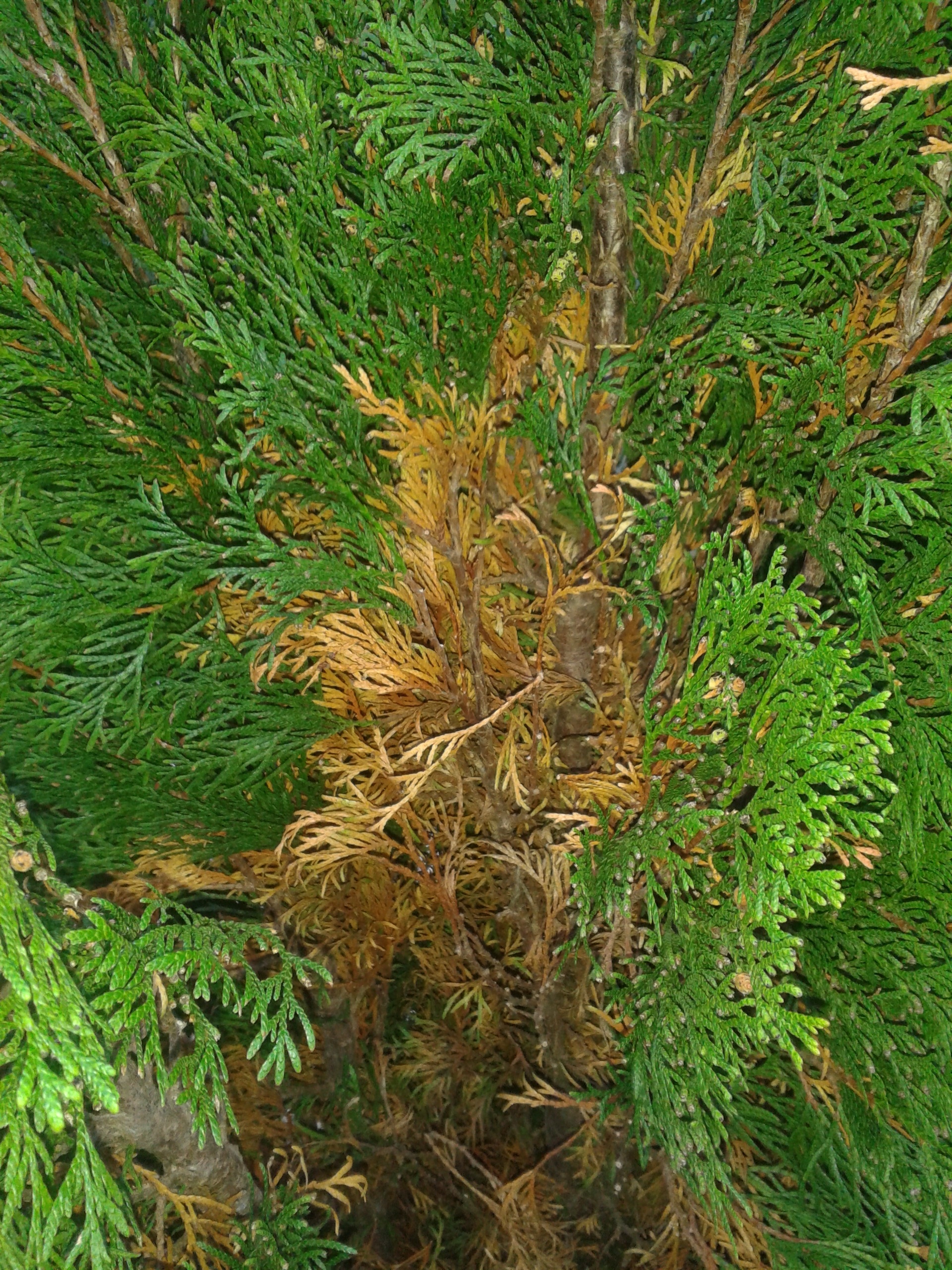 Az öreg tujákkal nincs mit tenni, főleg, ha díszítő értéküket már elvesztették. A legyengült növényeket sorra támadják meg a kártevők, kórokozók. Cserélje ki őket a célnak megfelelő alkatú fajták fiatal példányaira.