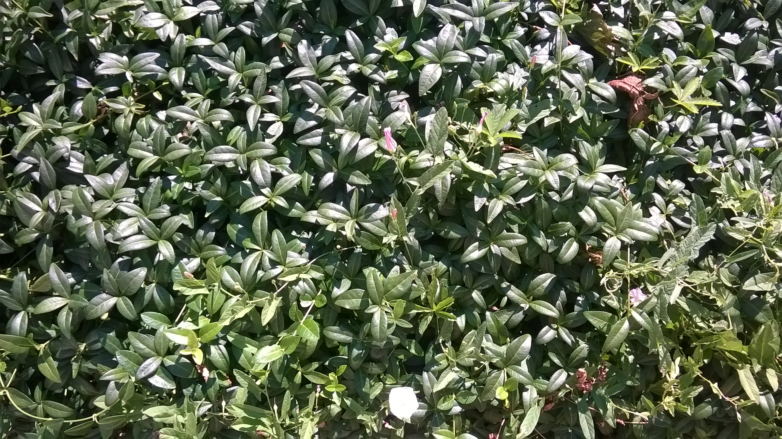 A növényt az egyik épület melletti vízelvezető árok partjához telepítve láttam, a földet teljesen befedte, virága nem volt és a levele vékony, puha tapintású, sűrű és egyenletes volt.