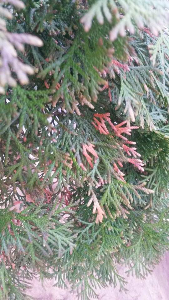 A képen latható tujámon ilyen elváltozasok láthatóak. Először megsargul a levele majd lebarnul. Könnyen kilehet szedegetni a beteg részeket.Mit javasolnak mivel permetezzem? Nem szeretném ha tönkremenne! Vagy egyaltalan mi lett a baja?? Köszönöm válaszát.