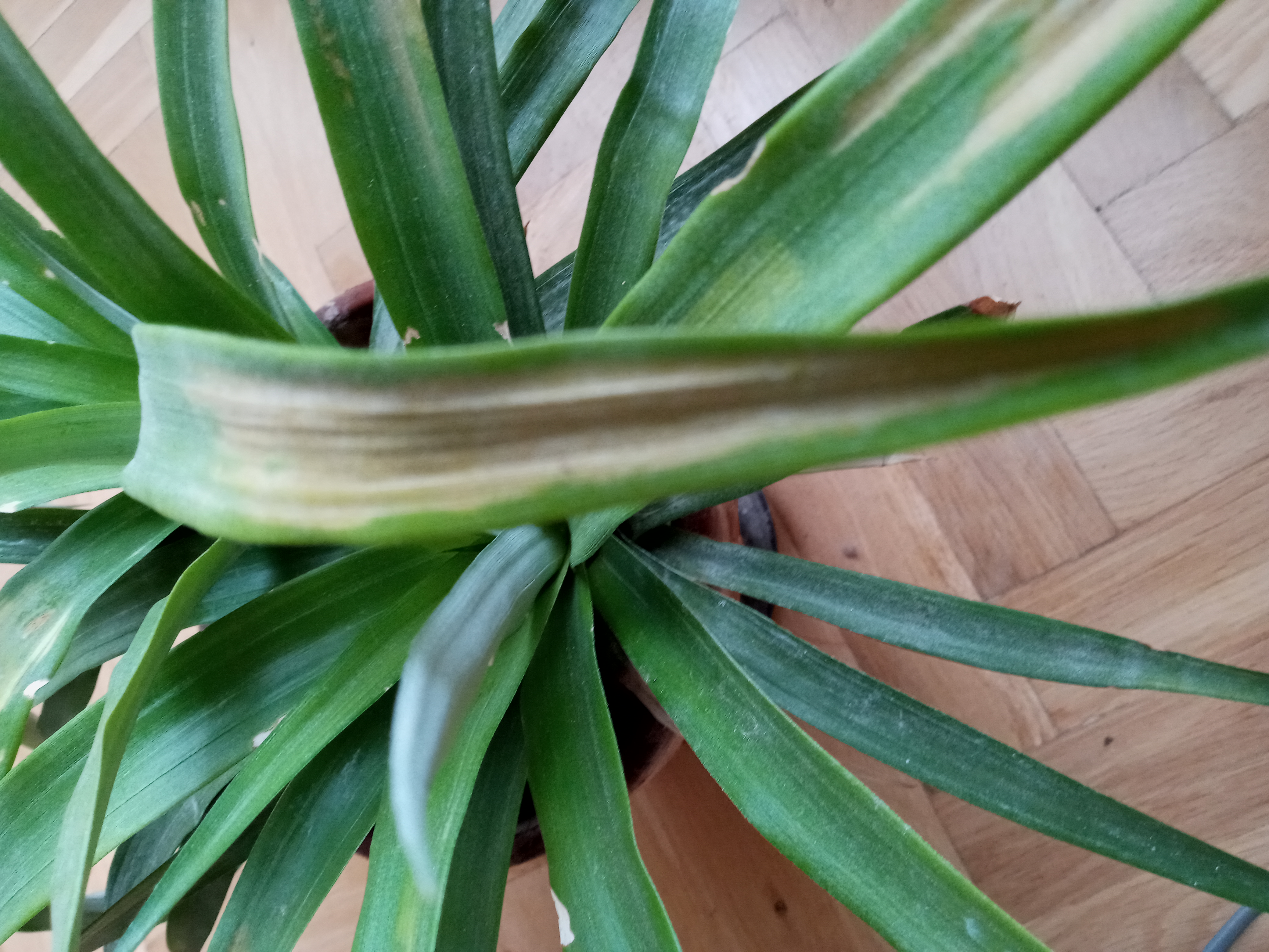 Napégést szenvedett a növényt. Tegye árnyékosabb helyre, most már a lakás világosabb részébe.