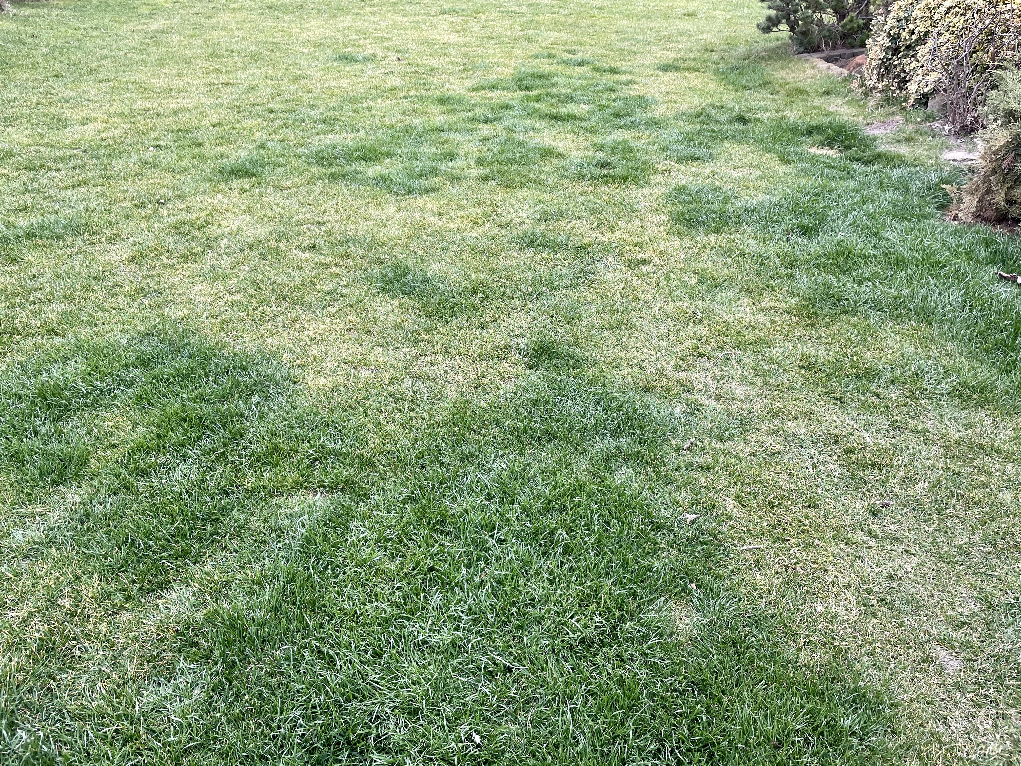Kedves Tamás. Lehet zöldmuhar. Elvileg egyéves gyomfű, de sajnos ezekben a meleg telekben sokszor nem fagy ki. A meglévő gyepet kell megerősíteni felülvetéssel azonos típusú magkeverékkel, mint amiből a gyepszőnyeg készült, vagy sport fűmagkeverékkel, ami angol perjét, illetve kisebb arányban vörös csenkeszt tartalmaz. Az árnyékos részeken más fajok fognak felülkerekedni, pl a réti perje nem bírja az árnyékot. Ha erősen eltérő fényviszonyú, árnyékos és napos helyek is vannak a kertben, akkor árnyéktűrő keveréket javaslok, ami nagyobb arányban tartalmaz vékonyabb szálú vörös csenkeszt. Az ellenállóképesség és a szárazságtűrés fokozására javaslom a nádképű csenkeszes Toscana keveréket, ha nem tud vagy nem akar annyit öntözni. A tavaszi indító műtrágyát megkapta már a gyep?