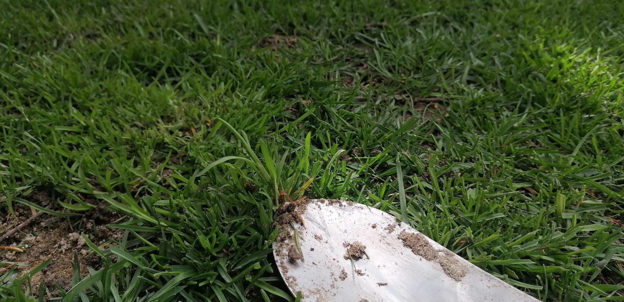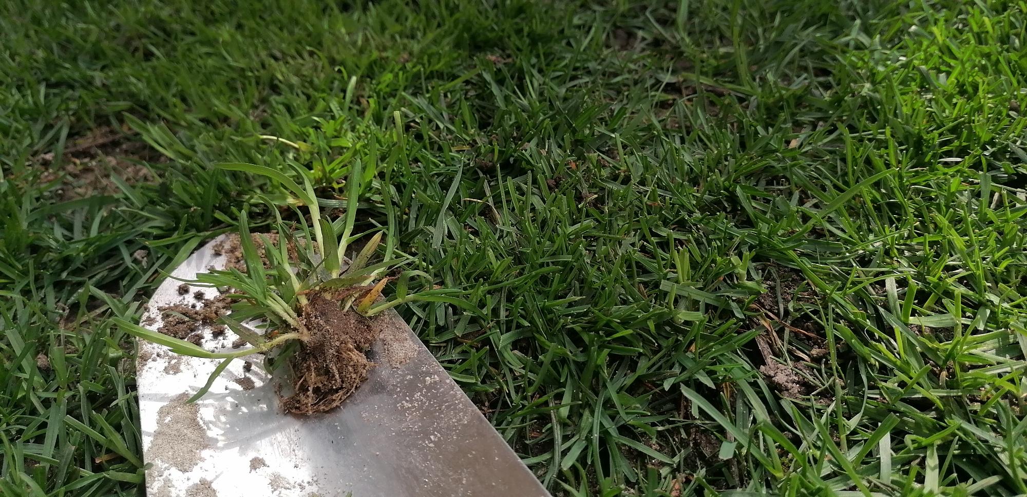A kézi megoldás nem kivitelezhető, mert a terület is nagy és lóherétől kezdve, egyéb apró levelű gyomok is vannak benne, amik a lenti képen is látszanak.